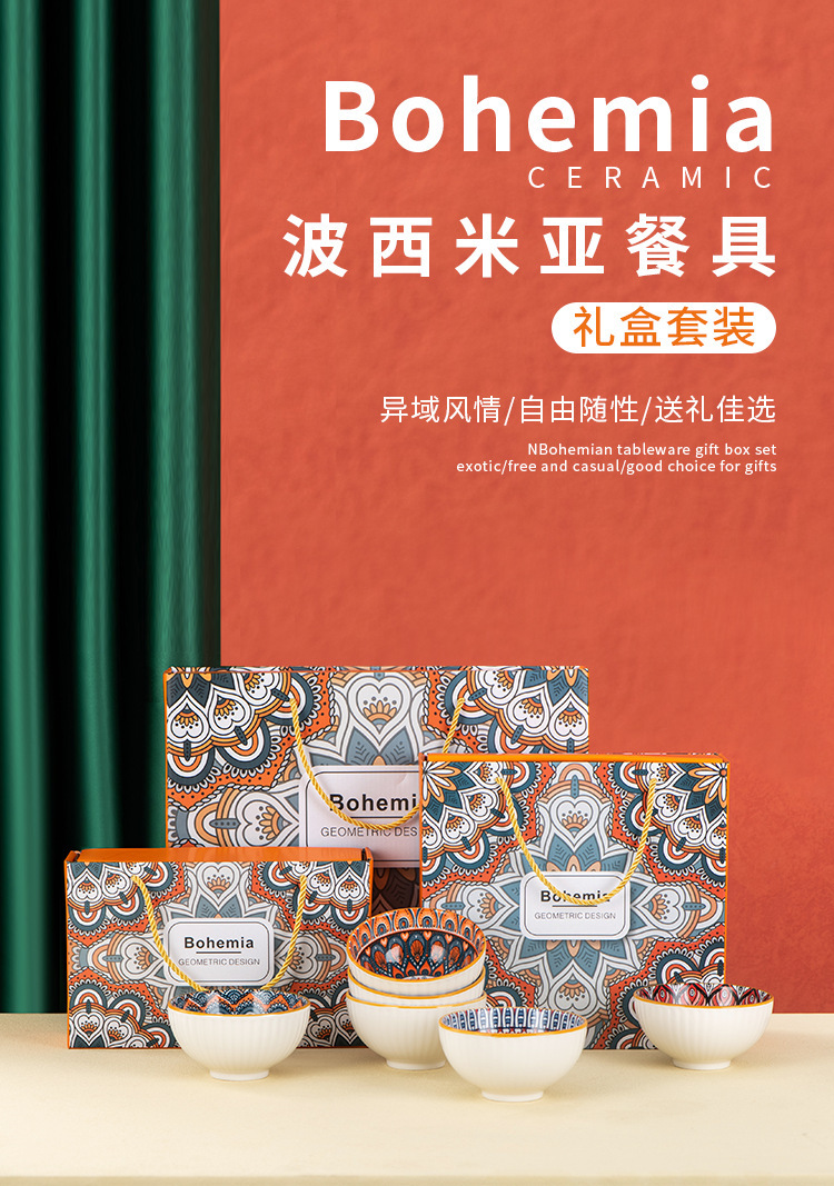 波西米亚陶瓷碗碟套装 优雅婚庆餐具礼盒套装 开业活动礼品 新年公司礼物伴手礼