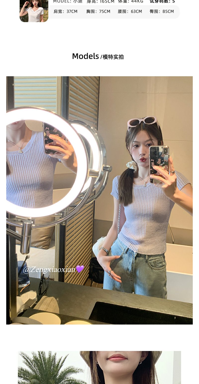 <曾小咸推荐>现货秒杀!微信超特价!2色短款短袖针织衫 日常119.99 立减60 秒杀59.99!