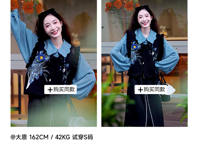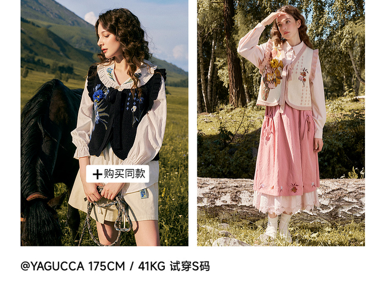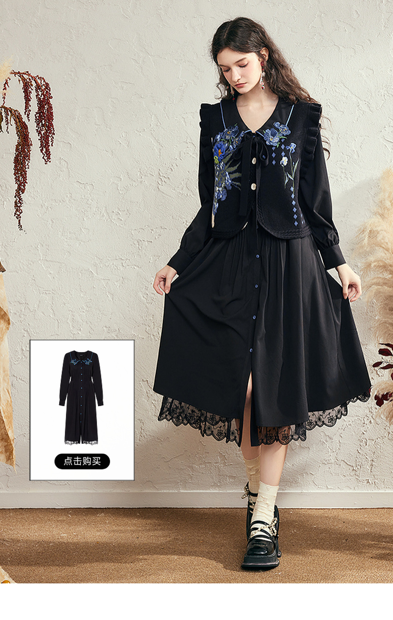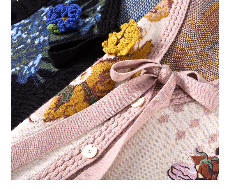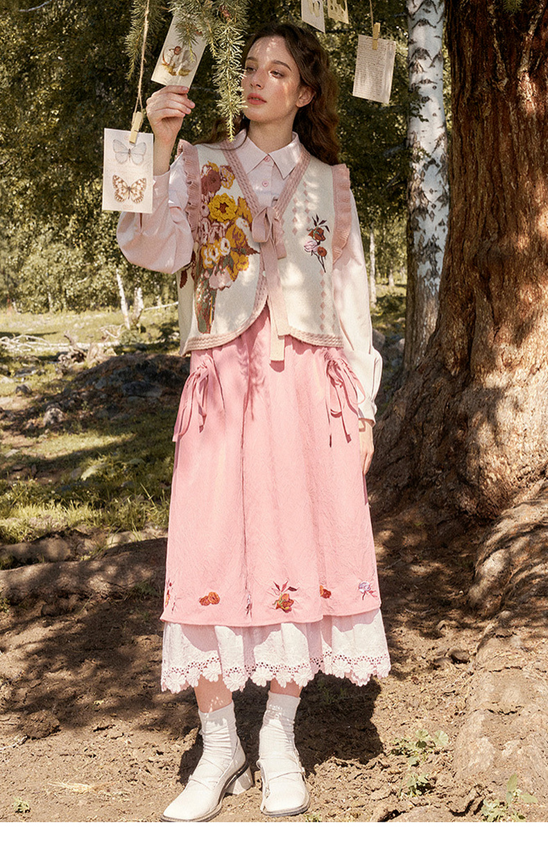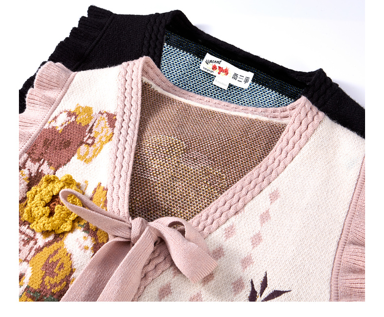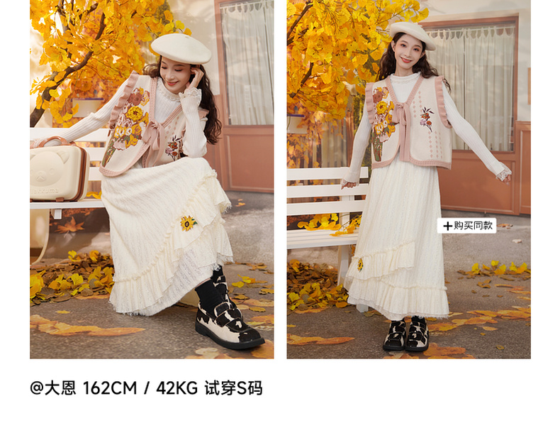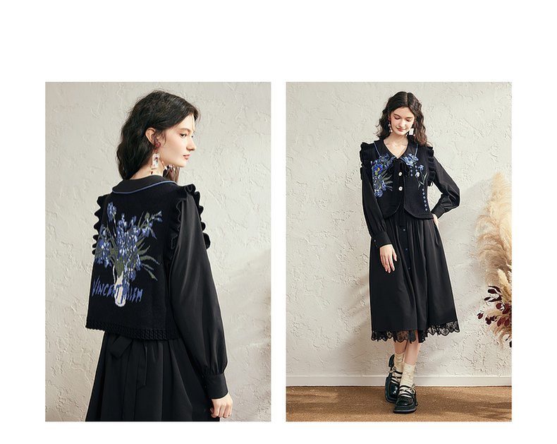 两三事梵高文艺银河甜心2024秋新款花卉图案荷叶边拼接无袖毛衣女
