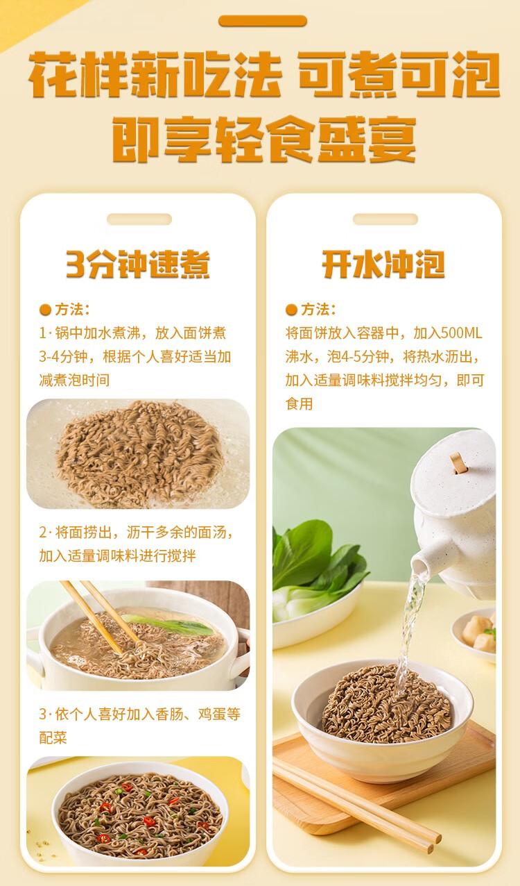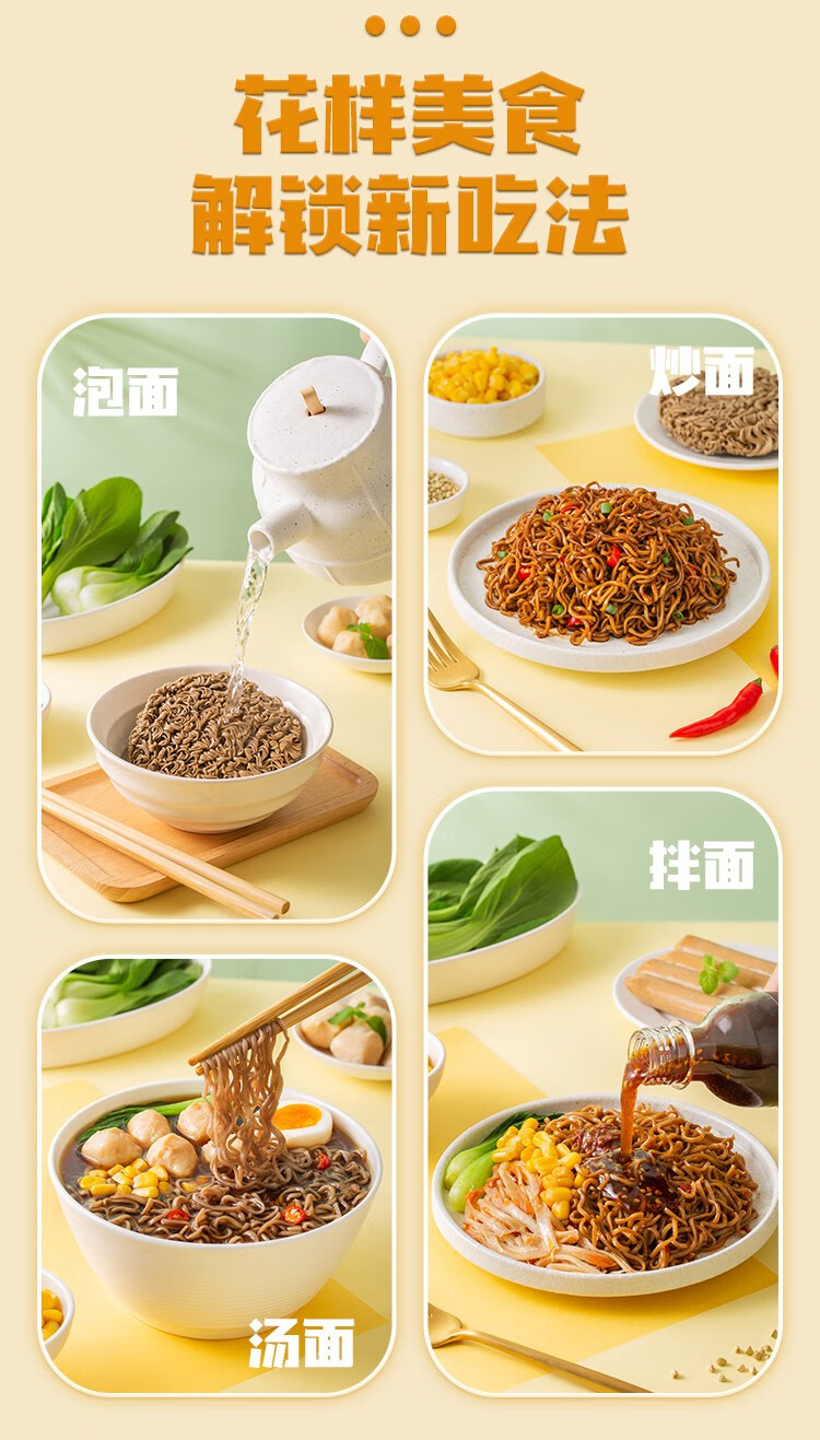 袋鼠先生 低脂荞麦方便面泡面非油炸免煮速食杂粮粗粮拌面主食代餐 荞麦方便面*5袋