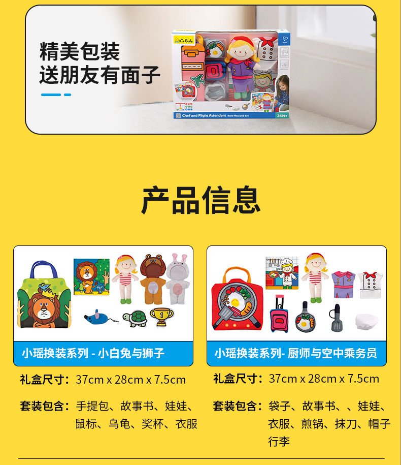奇智奇思儿童布偶娃娃换装套装礼盒幼儿礼物早教益智玩具