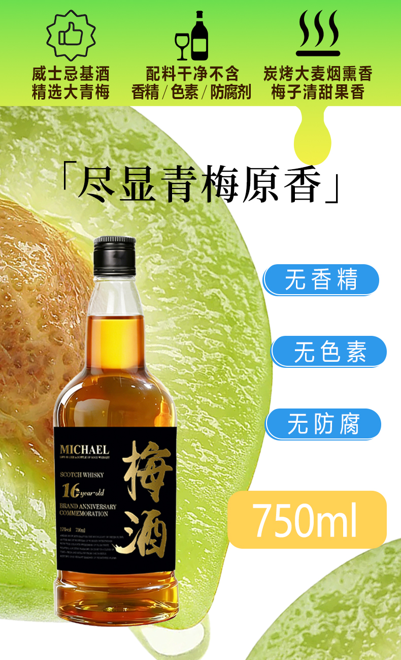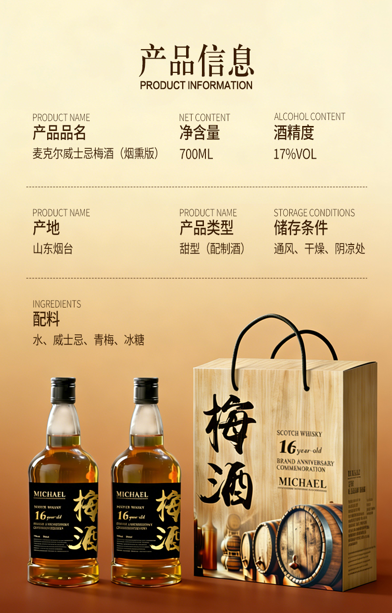 热卖中!!【1919全球酒水连锁专柜款】2016新款 麦克尔Michael威士忌梅酒(高阶烟熏珍藏版) 17%VOL 带手提礼盒