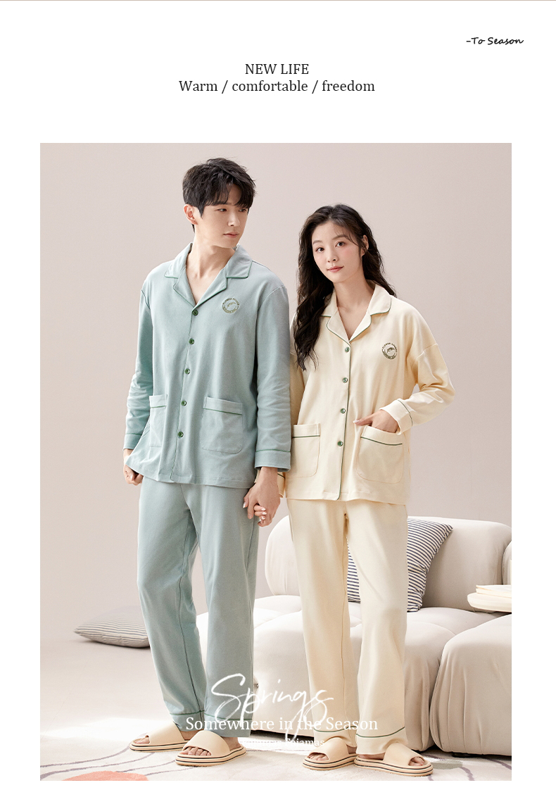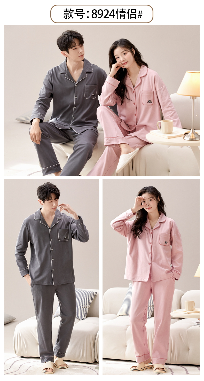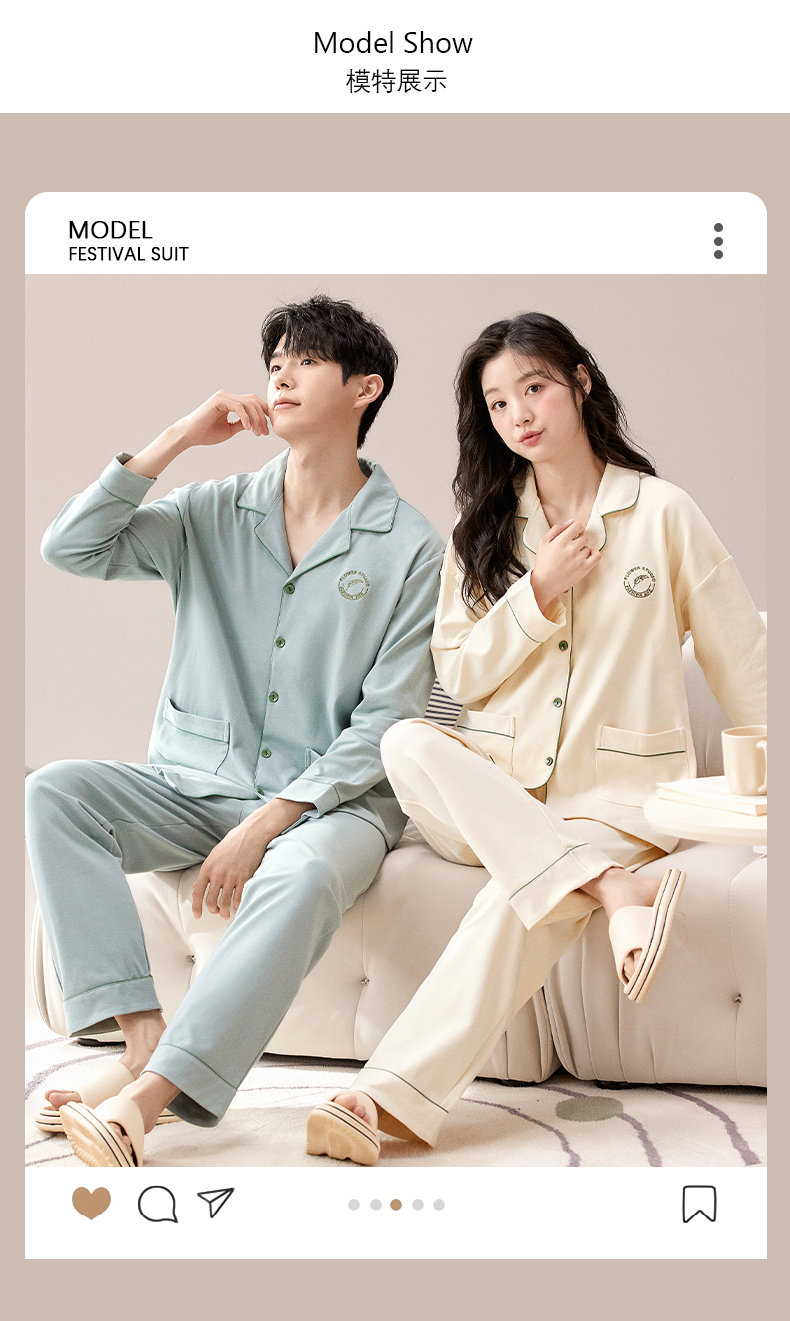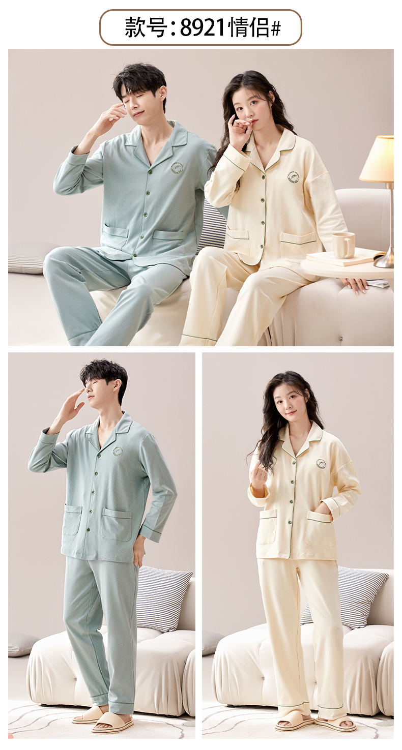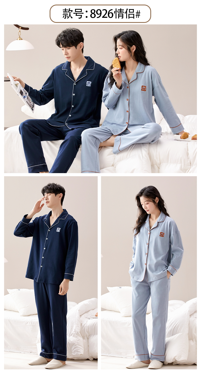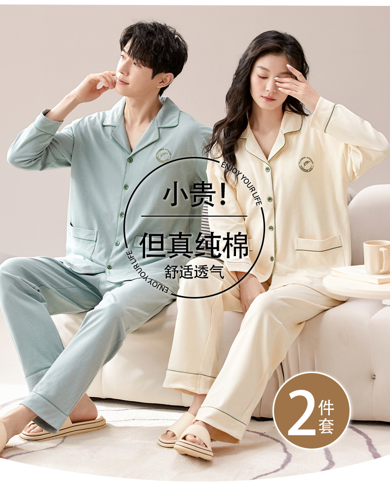 【热卖推荐】自然醒云梦情侣家居服100%棉加厚长袖长裤开衫睡衣QH