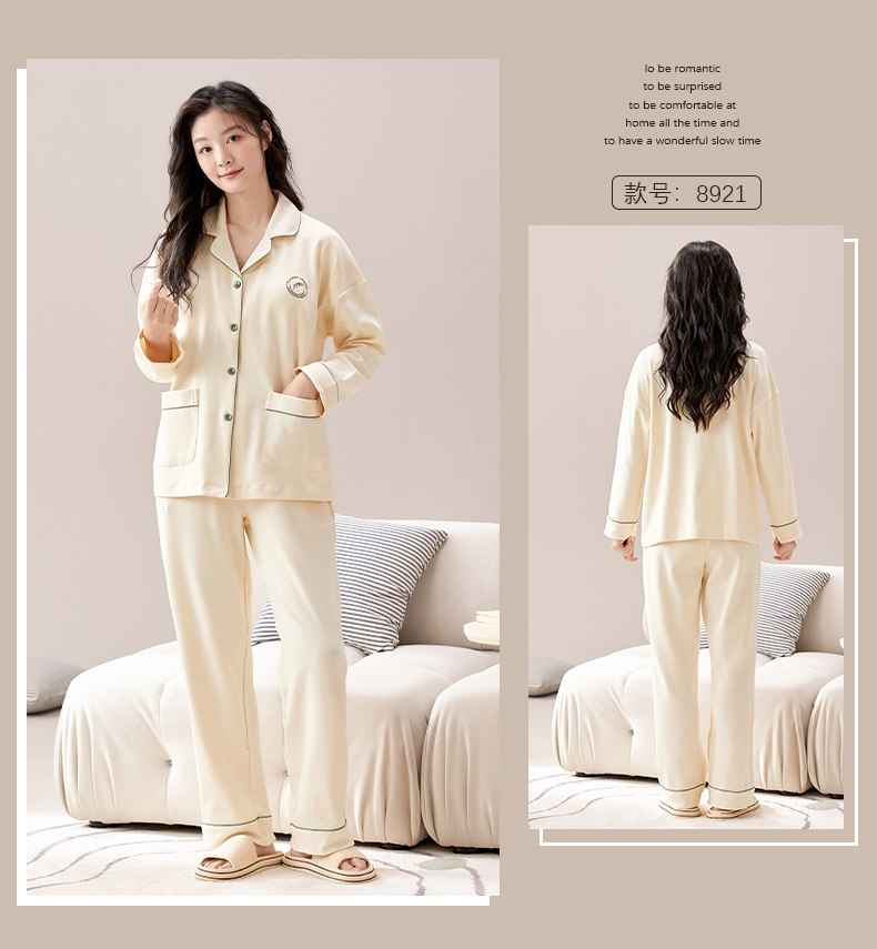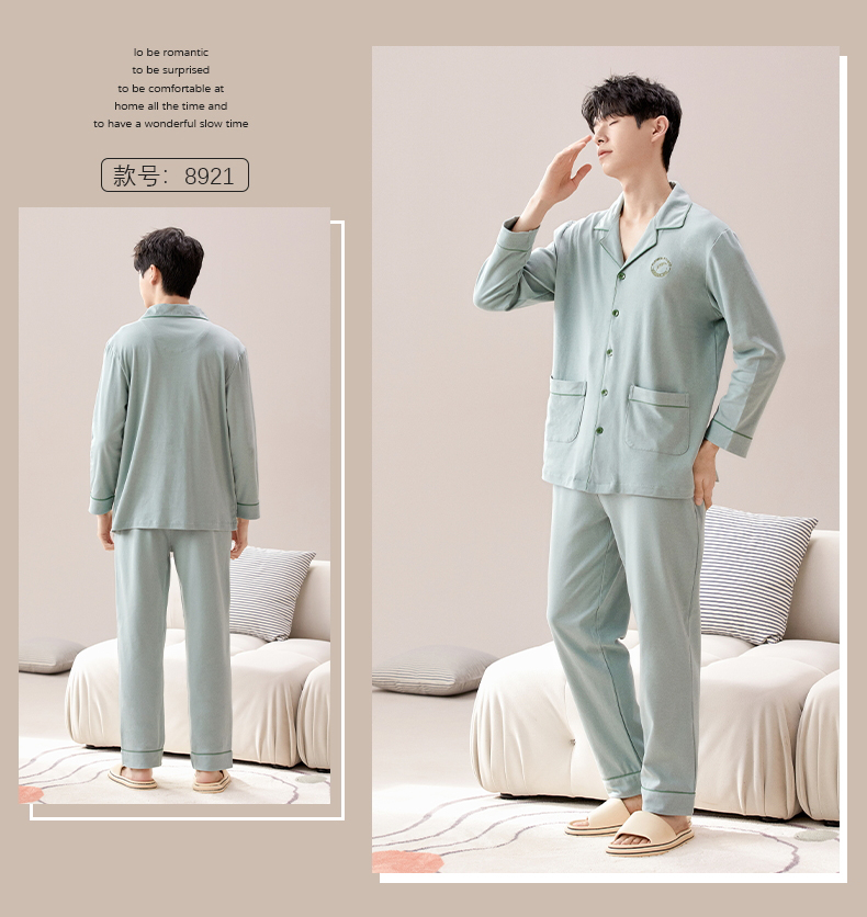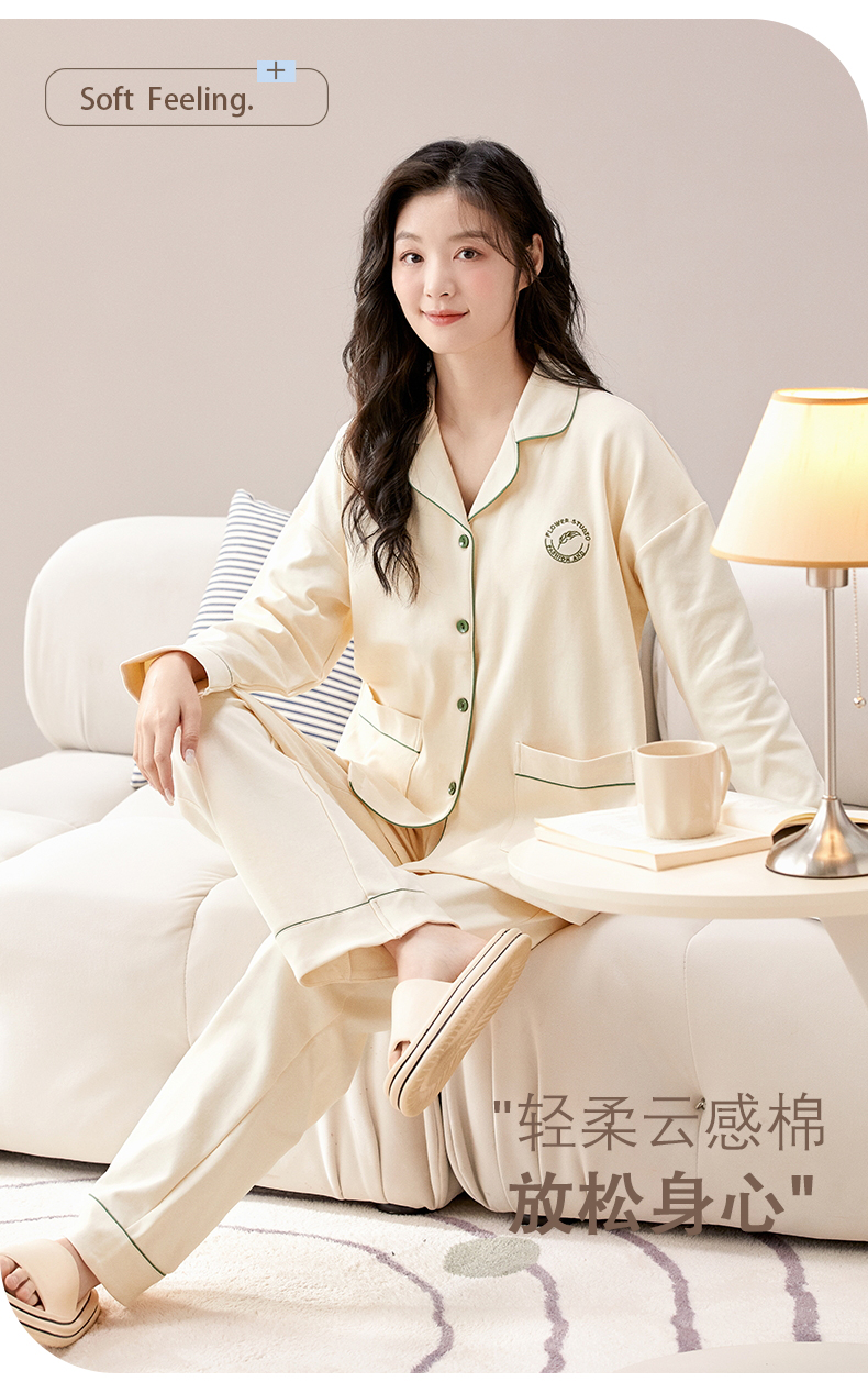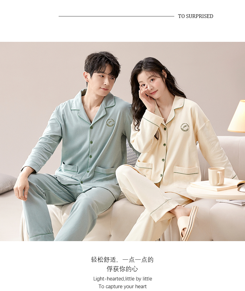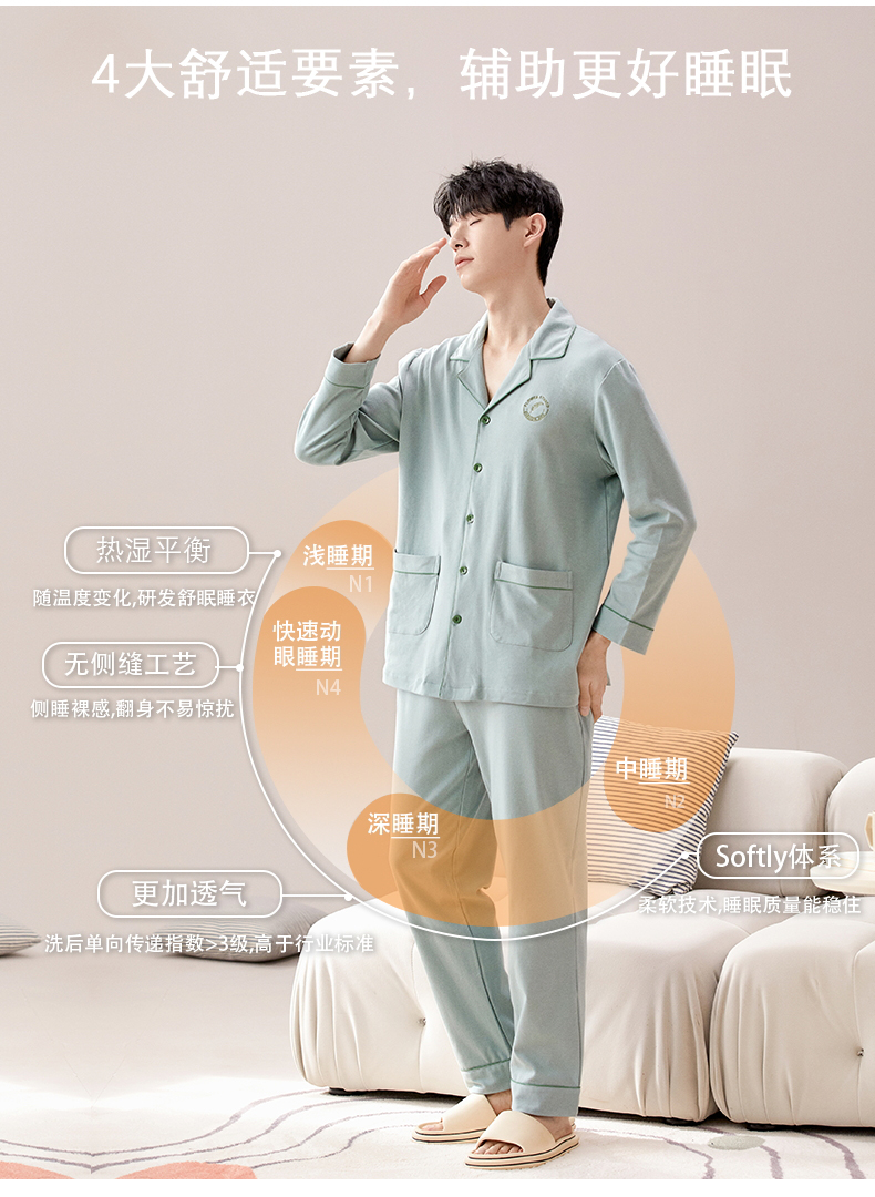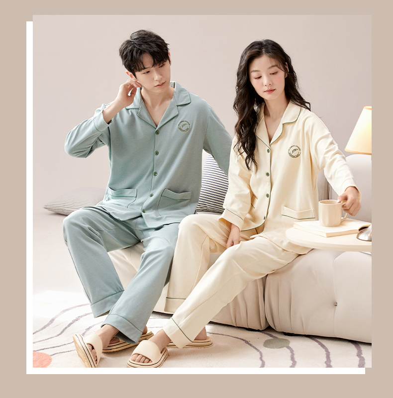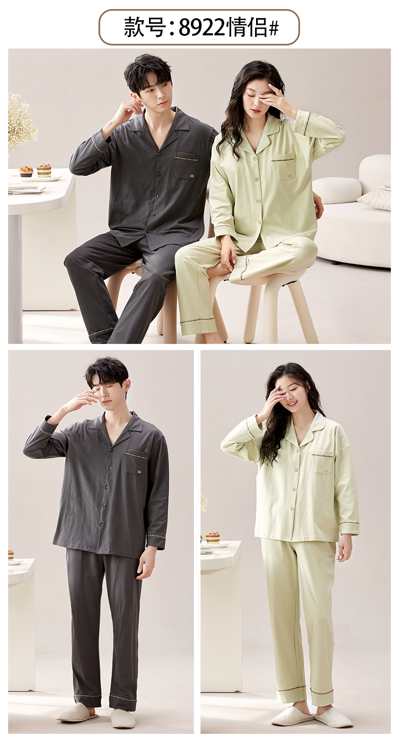 【热卖推荐】自然醒云梦情侣家居服100%棉加厚长袖长裤开衫睡衣QH