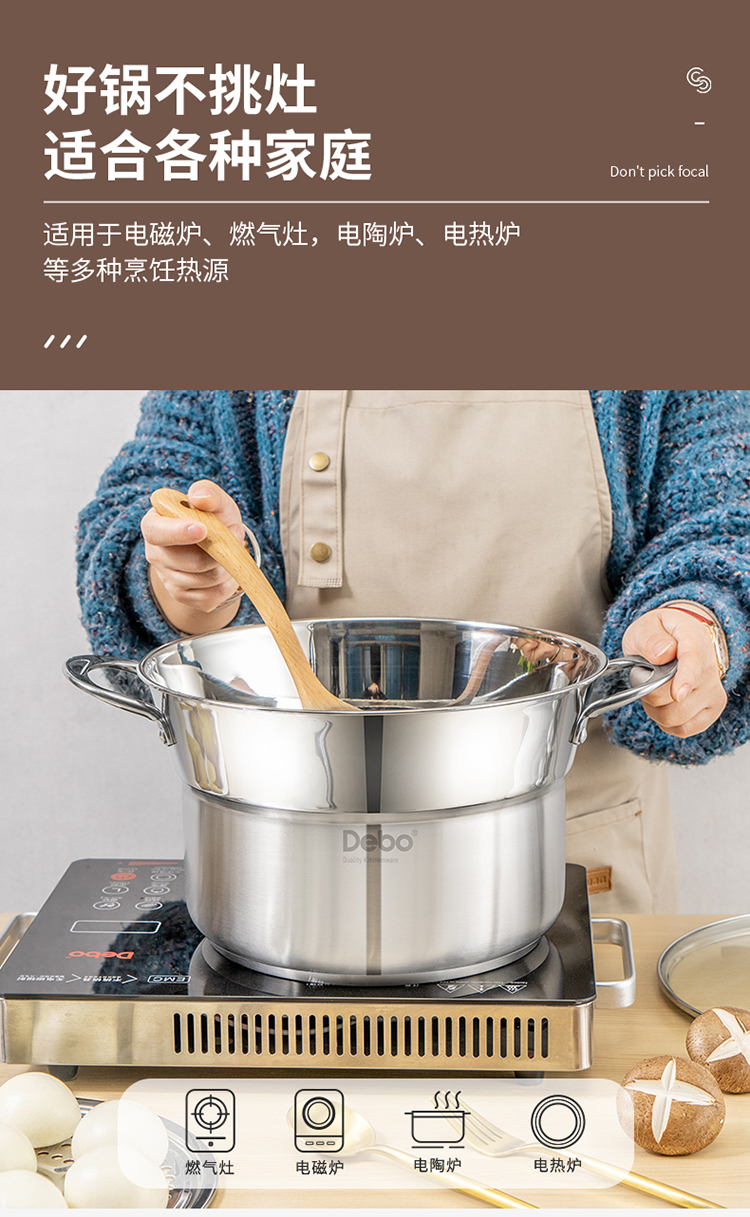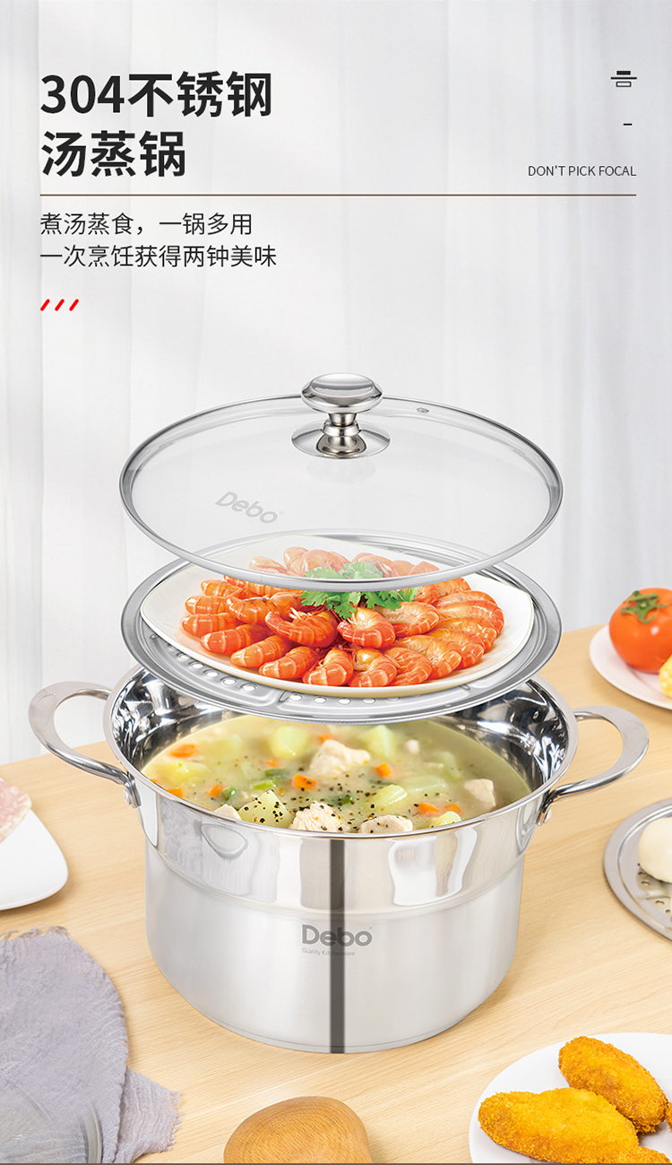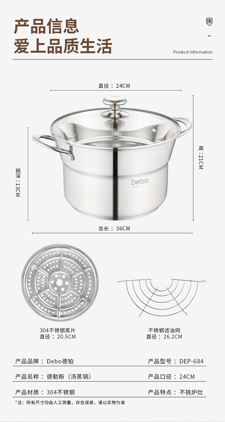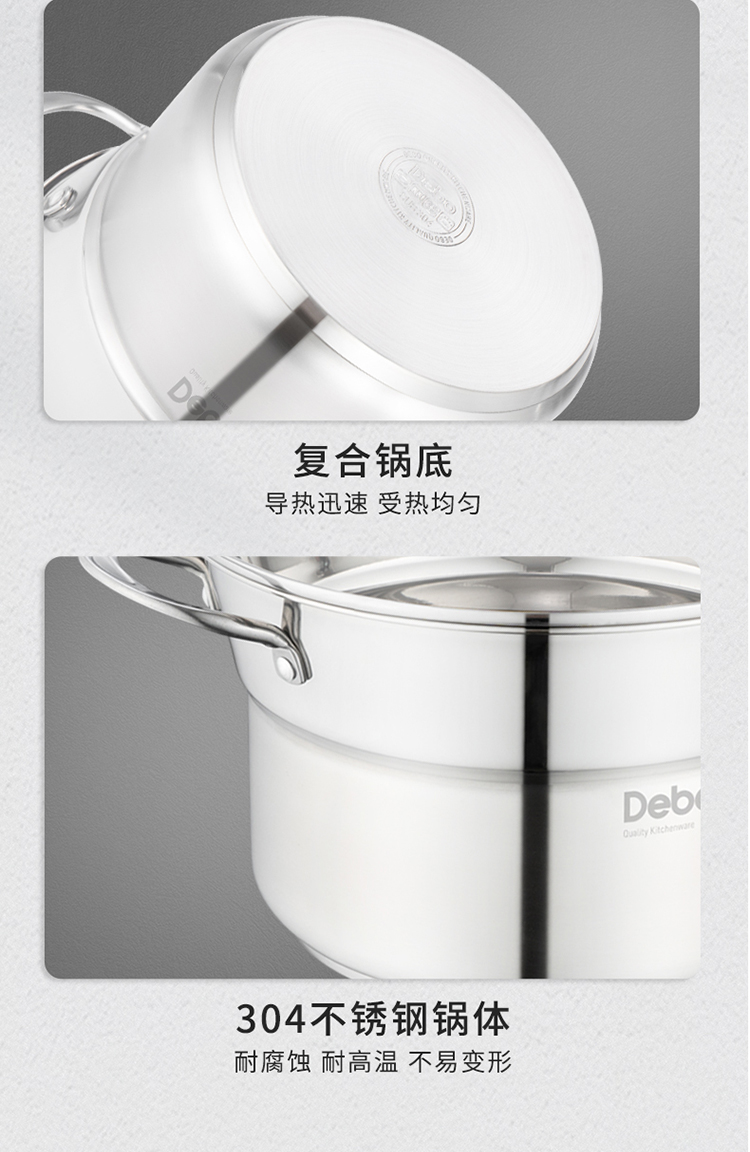 Debo德铂-德勒斯汤锅4L 汤、蒸、炸、煮、滤一锅Hold住全场(配玻璃锅盖、滤油网、蒸片)