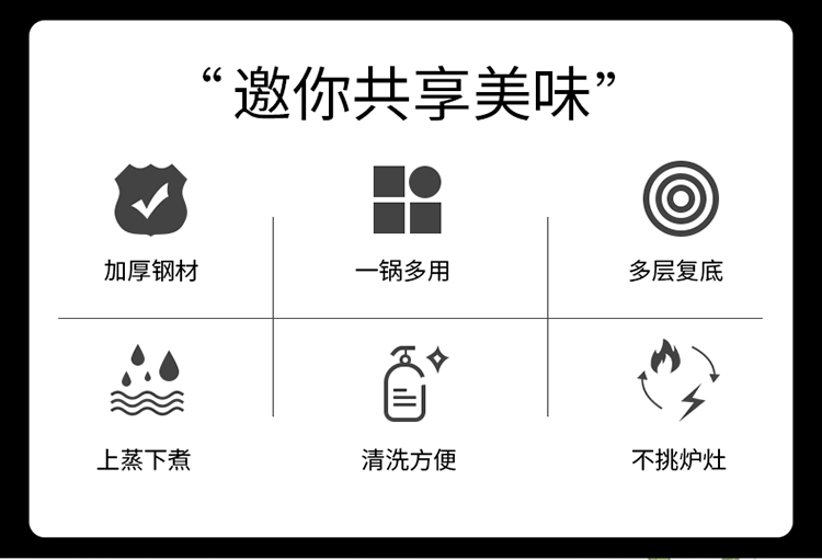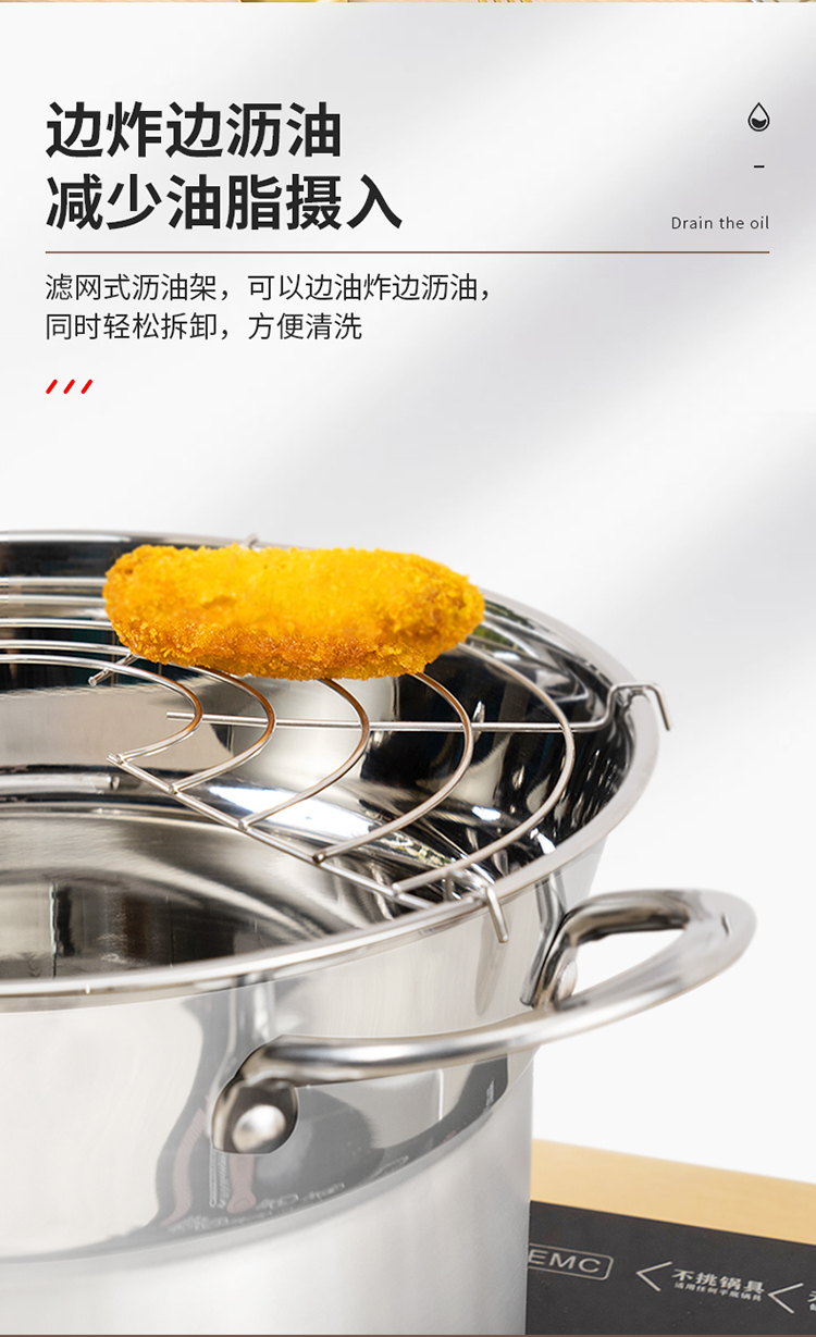 配置:锅身*1、玻璃盖*1、滤油网*1、蒸片*1