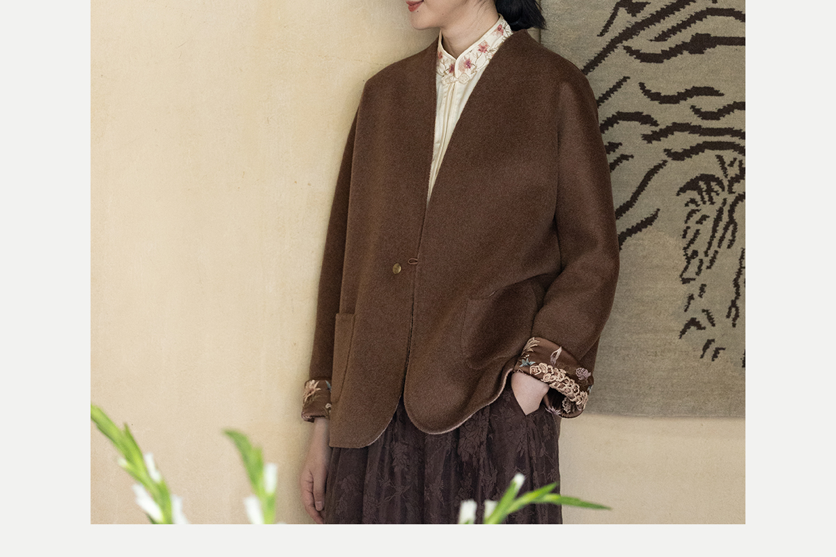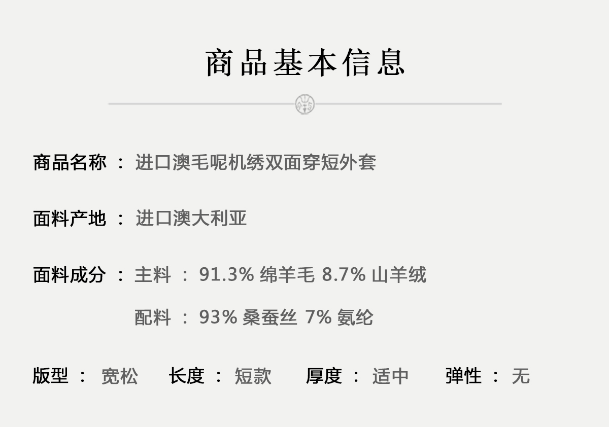 牧衣游原创 进口澳毛呢机绣双面穿短外套女软糯轻盈毛呢外套 百川