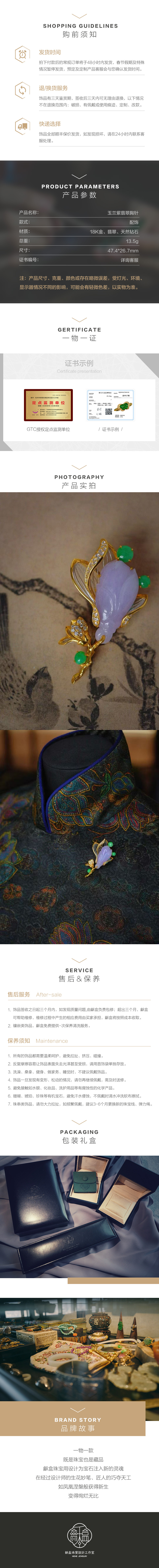 龢盒原创 紫翡玉兰胸针
