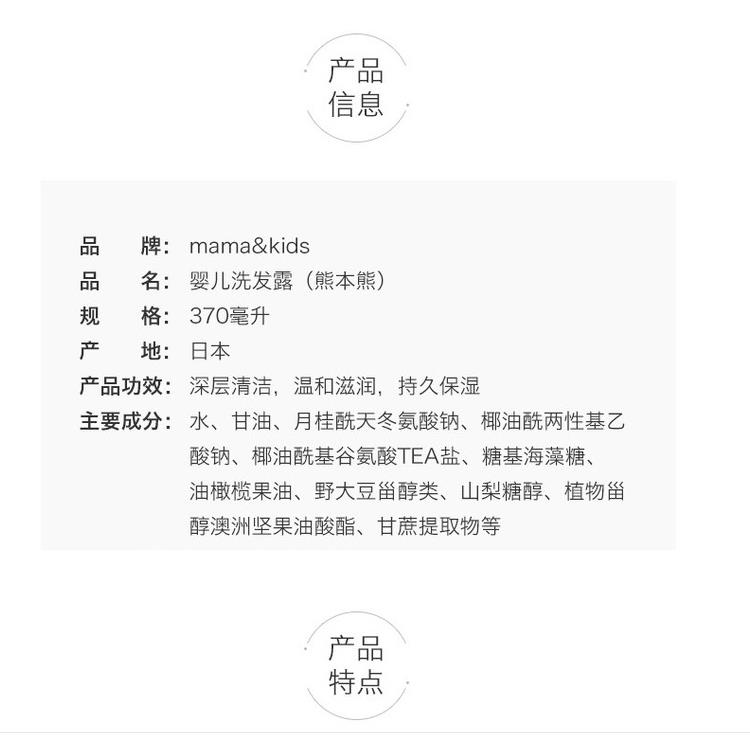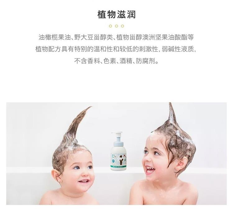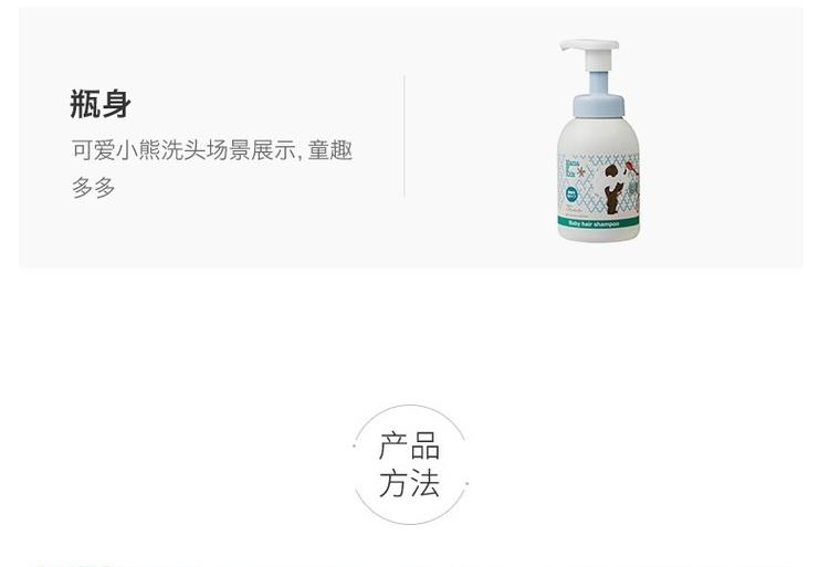 即使沾在眼睛上宝宝也不会难受;含有天然寡糖成分散发淡淡的黄色和甜香味,小熊卡通设计,让宝宝爱上洗澡