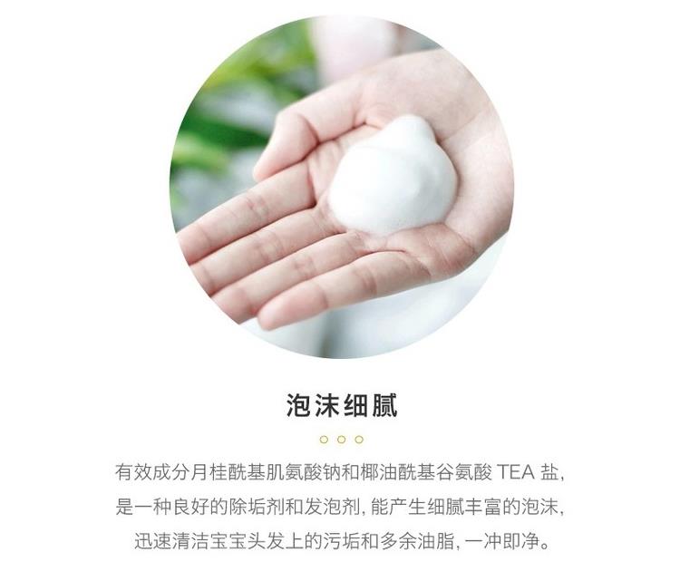 天然成分无添加的弱酸性婴儿泡沫沐浴露,特制按压喷嘴设计,会产生细腻的泡沫,无添加弱酸性,