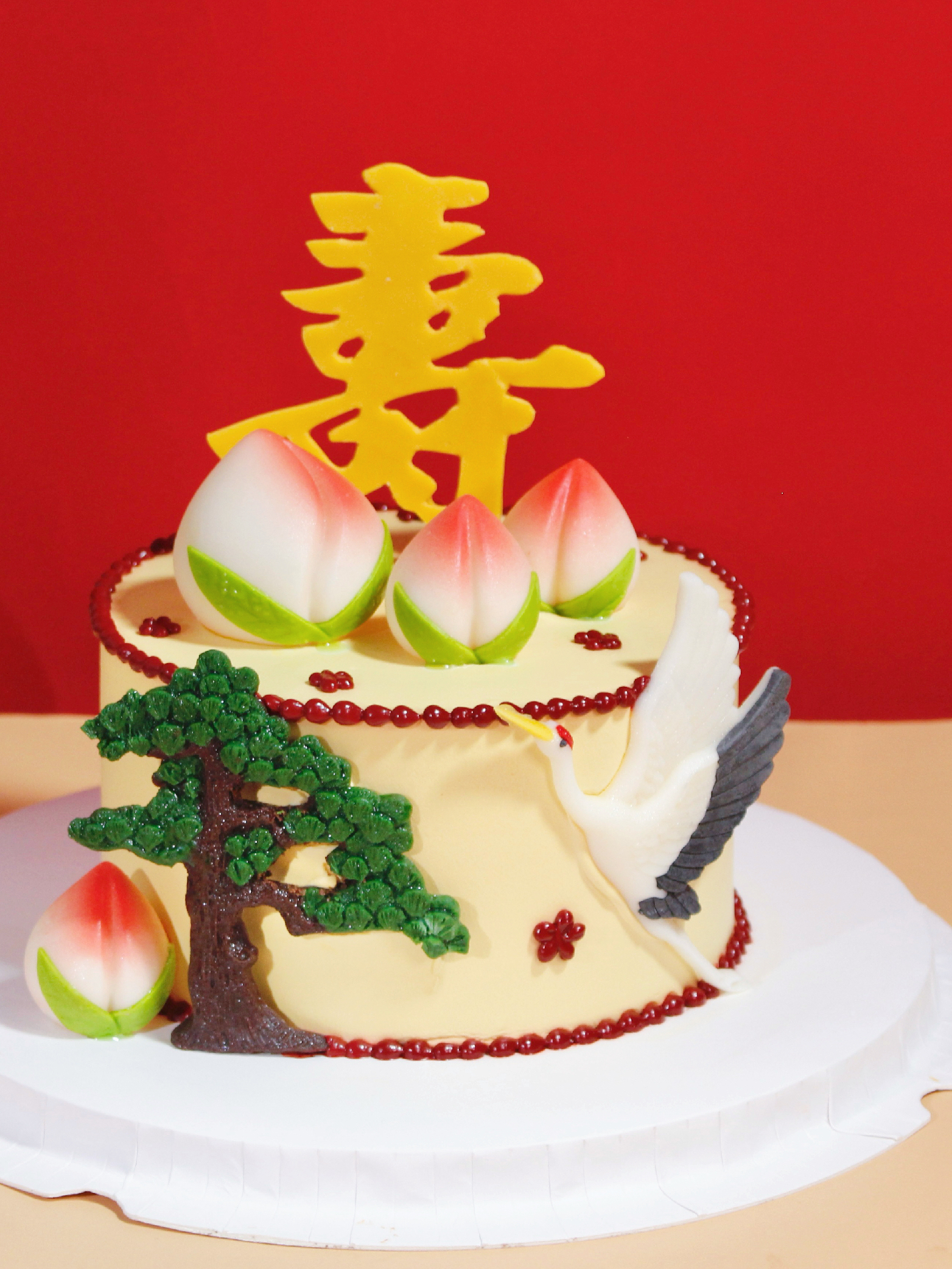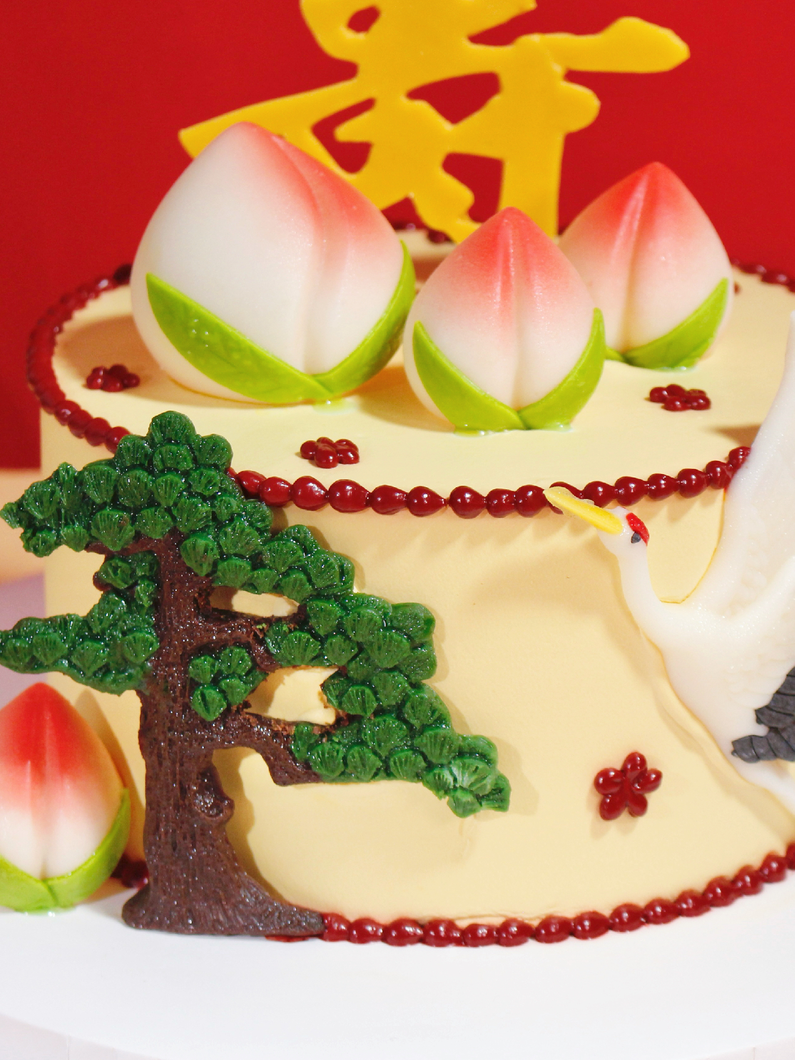 祝寿款【仙鹤献桃】1.8磅 香草奶油芒果夹心口味
