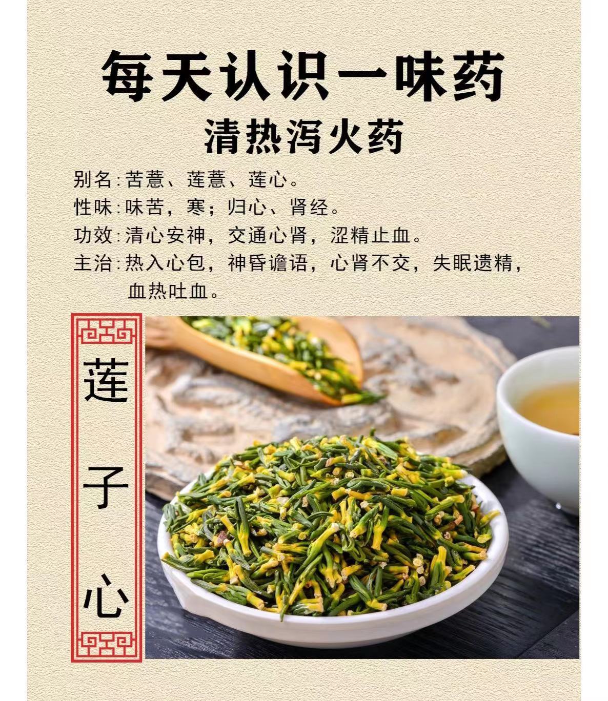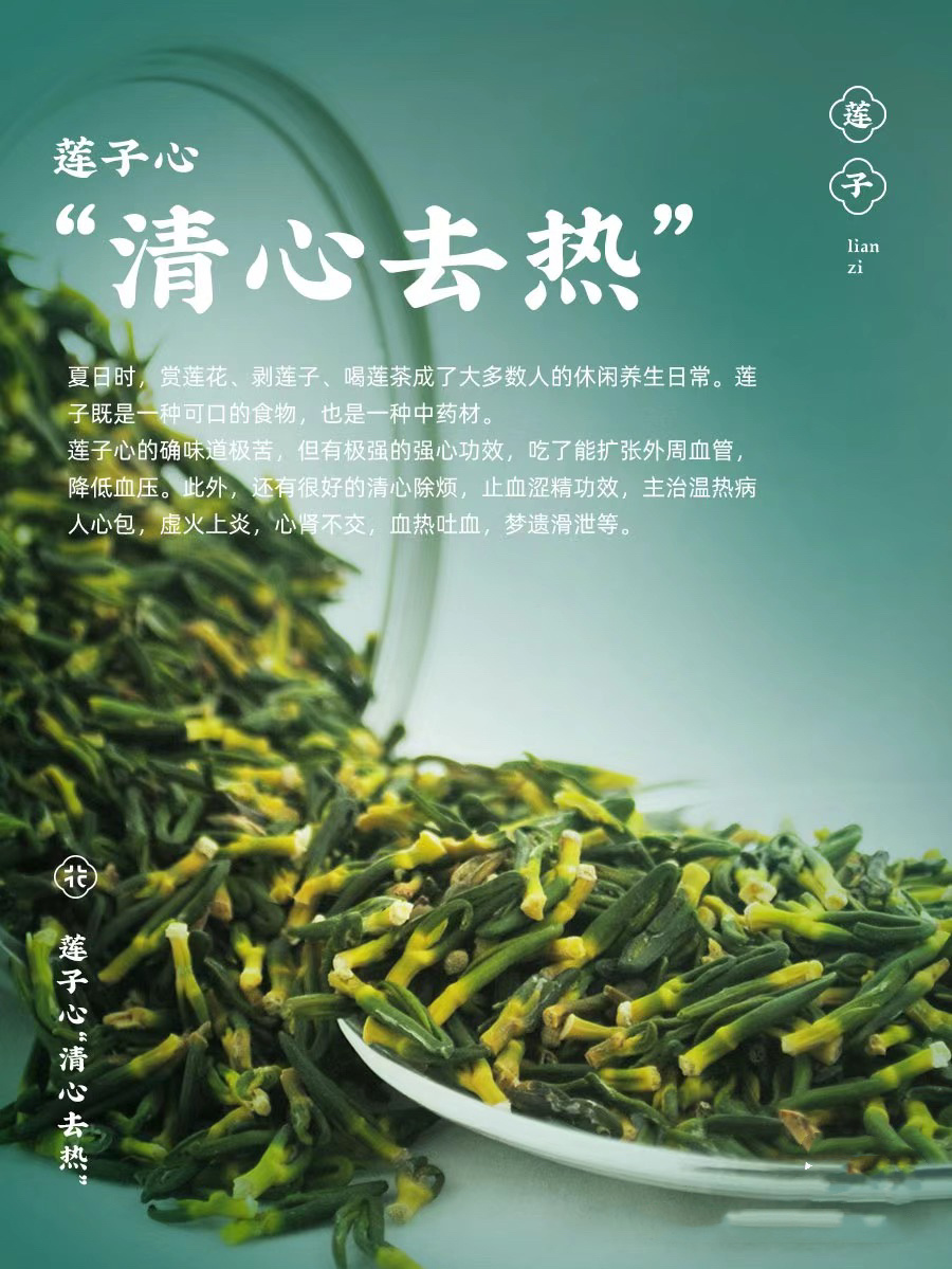 莲子心入心、肾经,祛暑热灭心火必备。