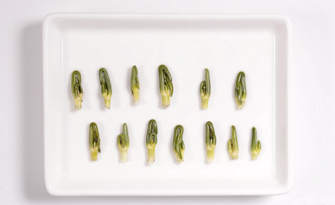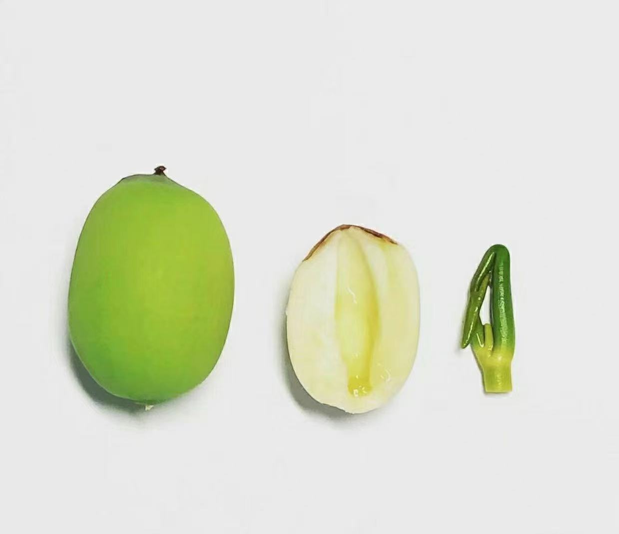把莲子打开,里面有一个小小的绿色胚芽,就是莲子心