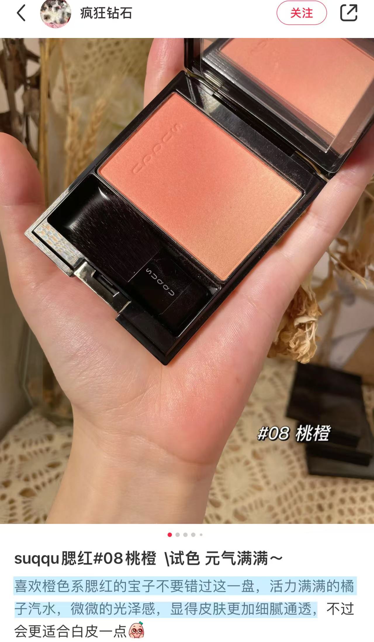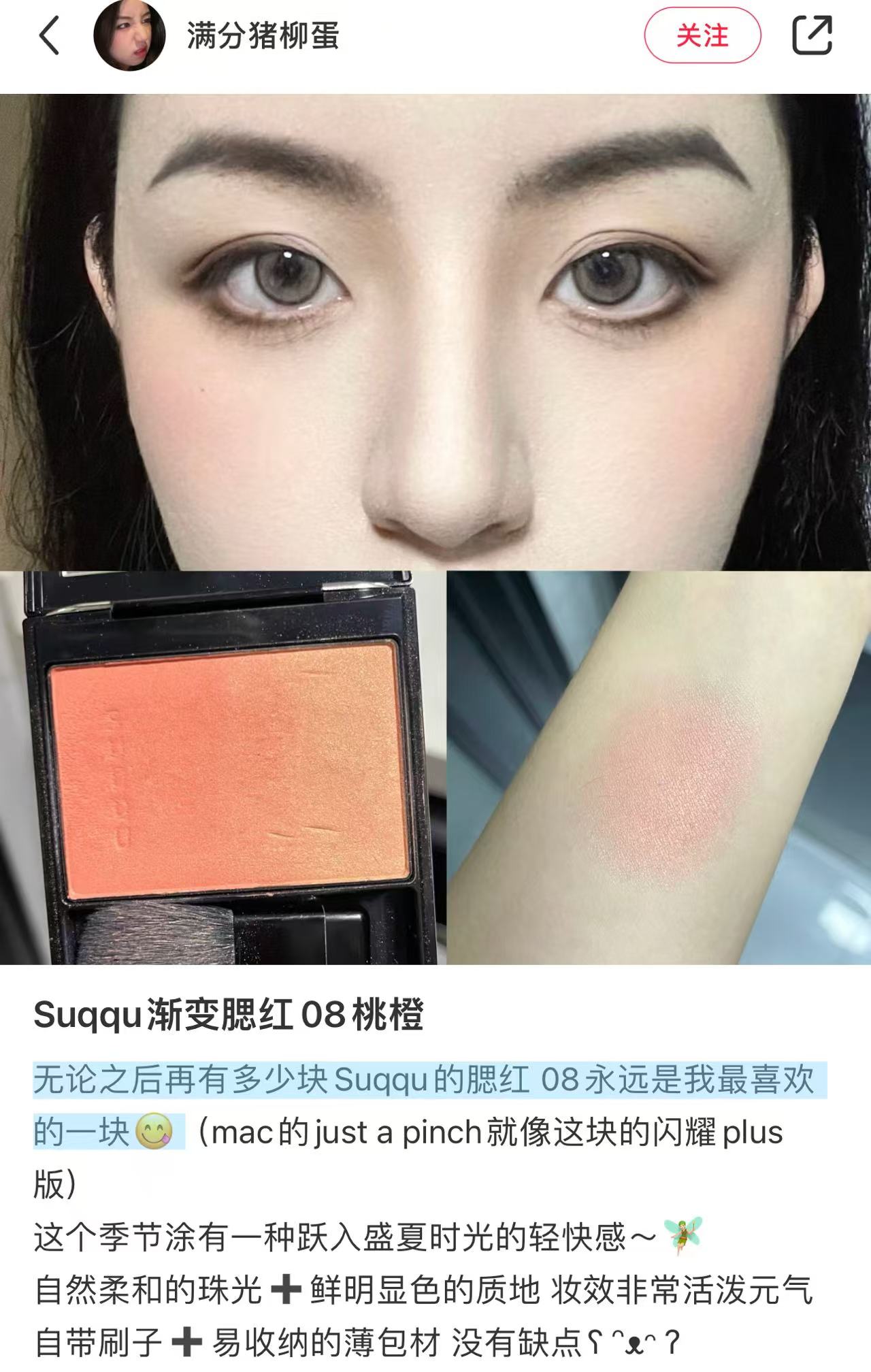 【品名】SUQQU晶采净妍颊彩腮红渐变色修容哑光珠光显白#08 桃橙 7.5g