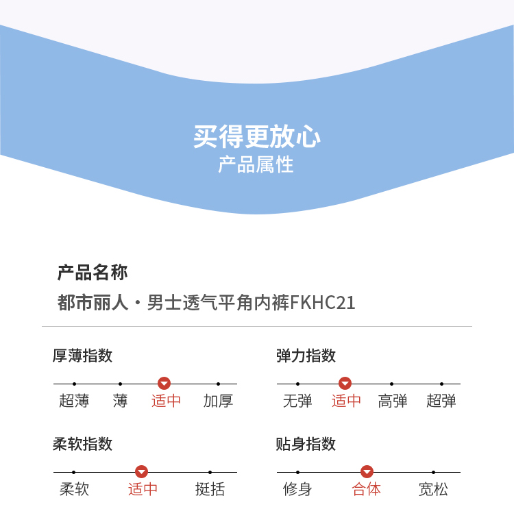 都市丽人内裤男士内裤40S棉拉架内裤明筋平角内裤男内裤FKHG08