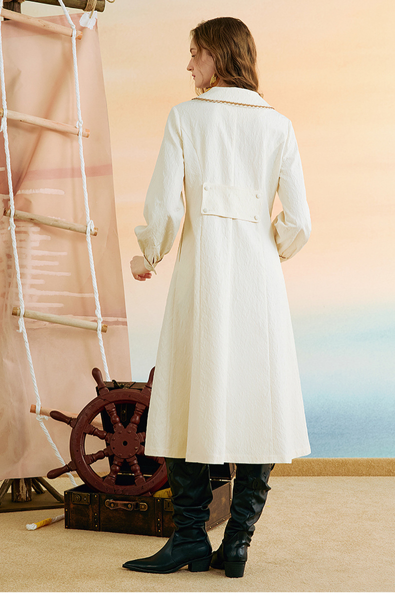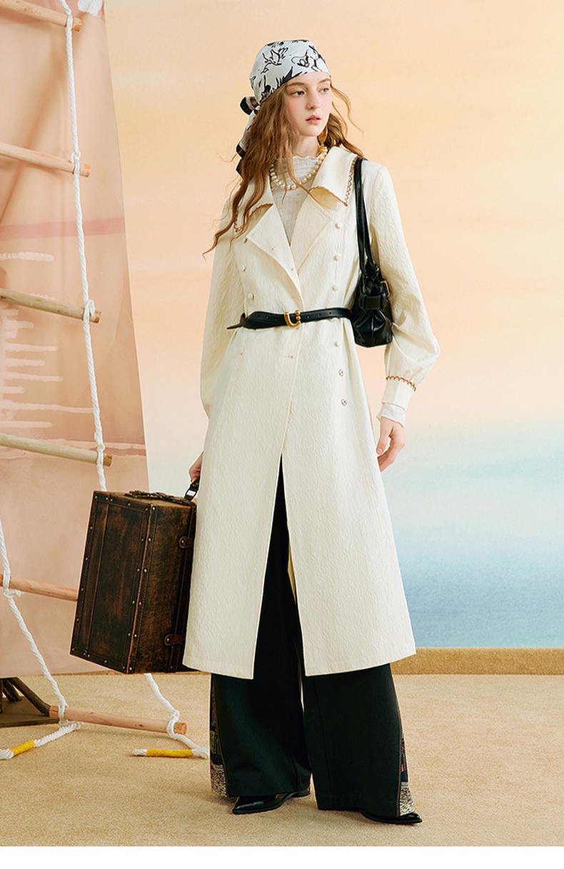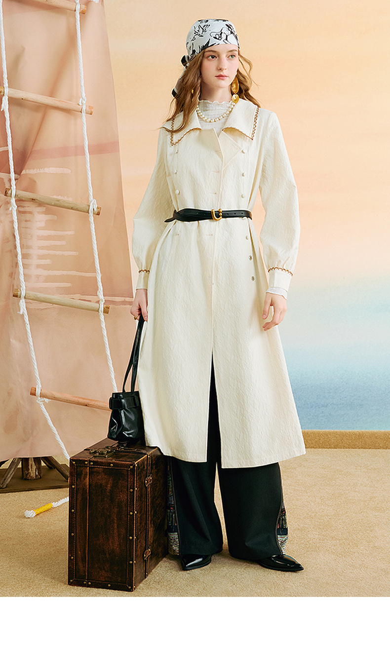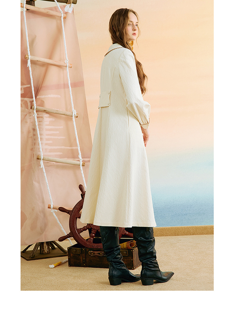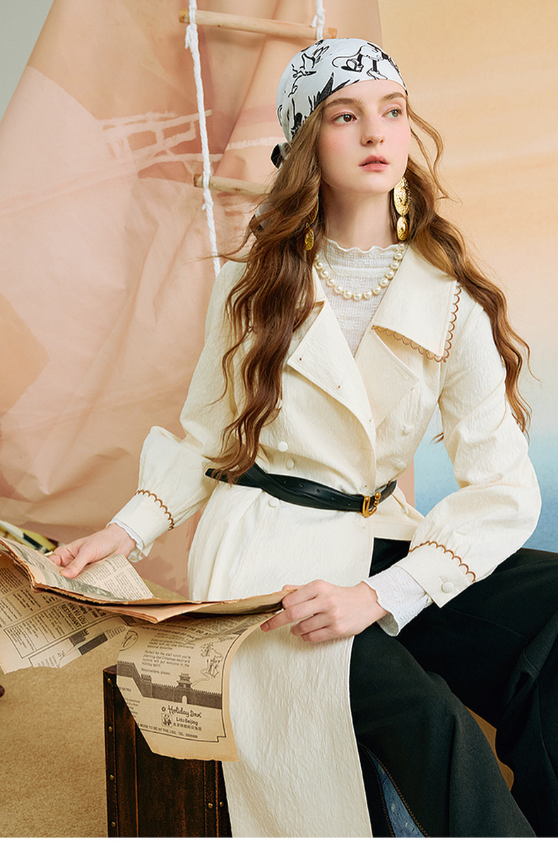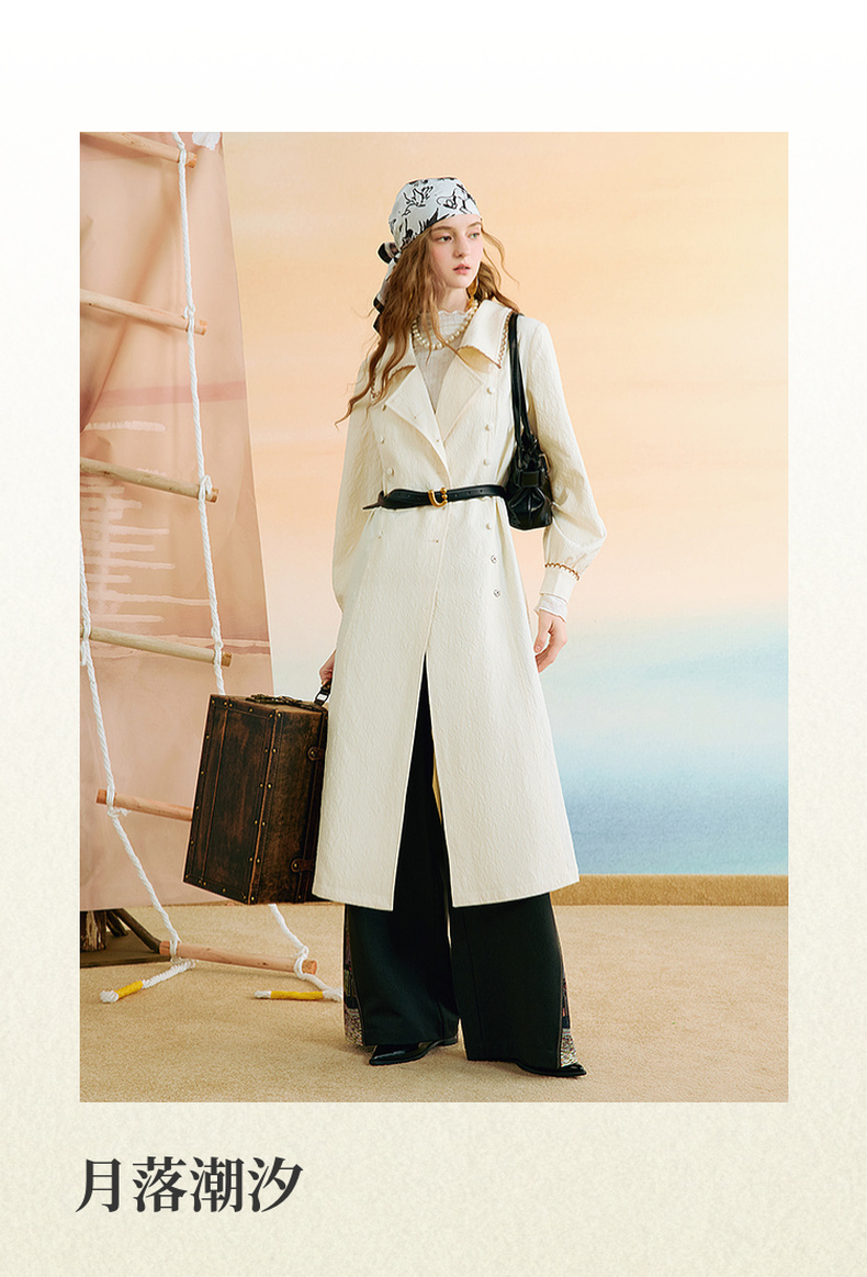 两三事梵高文艺 月落潮汐 2025秋季新款印花可拆领带双排扣连衣裙