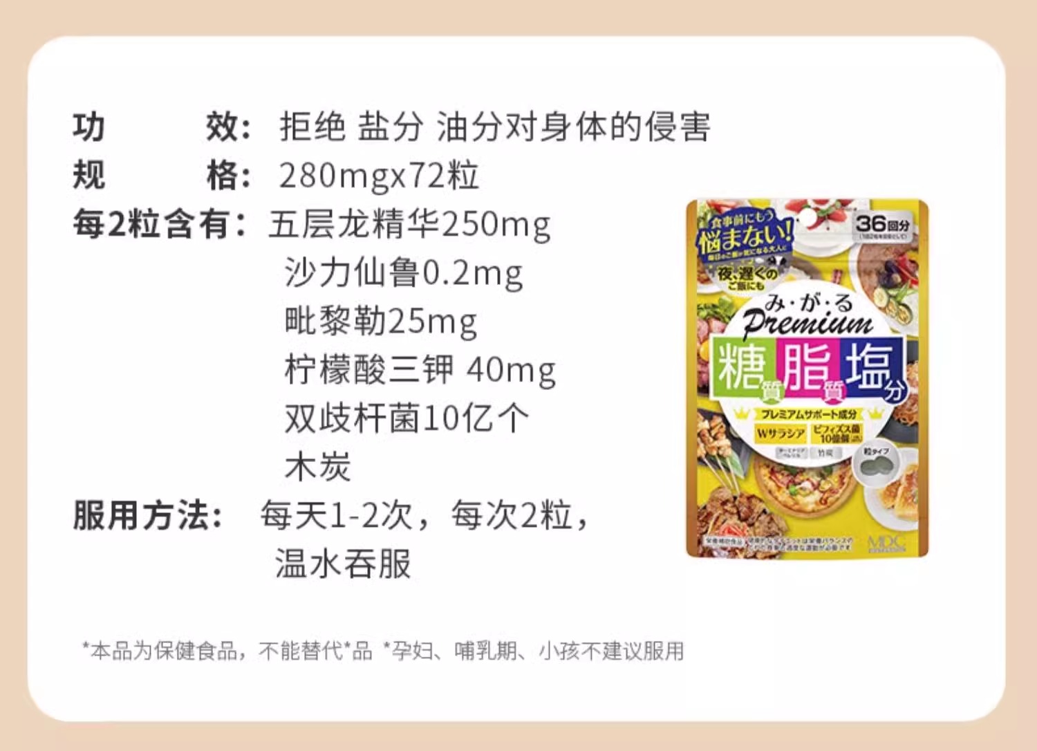 本品仅辅助身体健康,但它并非药品,不能替代任何药物用于治疗、预防、诊断疾病。任何身体不适或疾病症状,请务必及时就医,遵循专业医生的诊断和治疗建议。