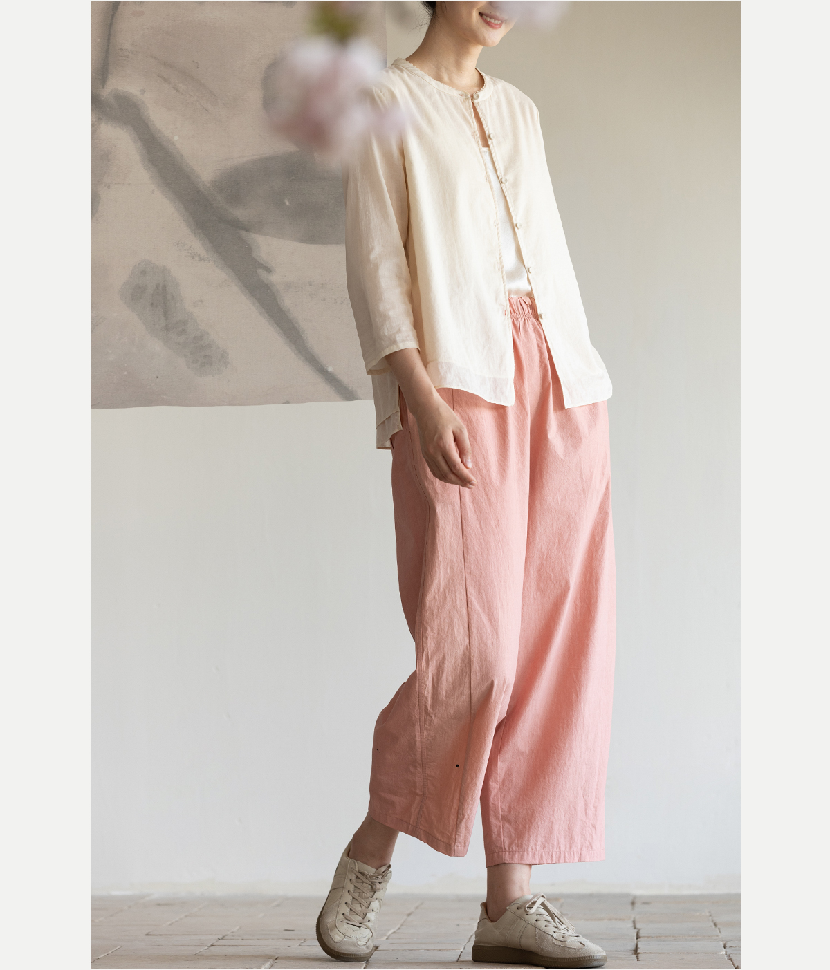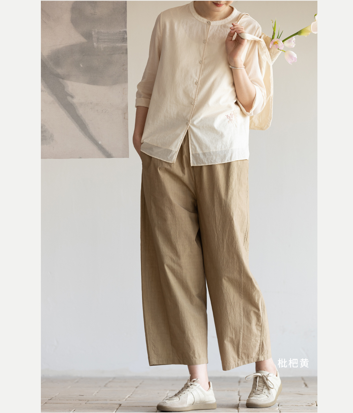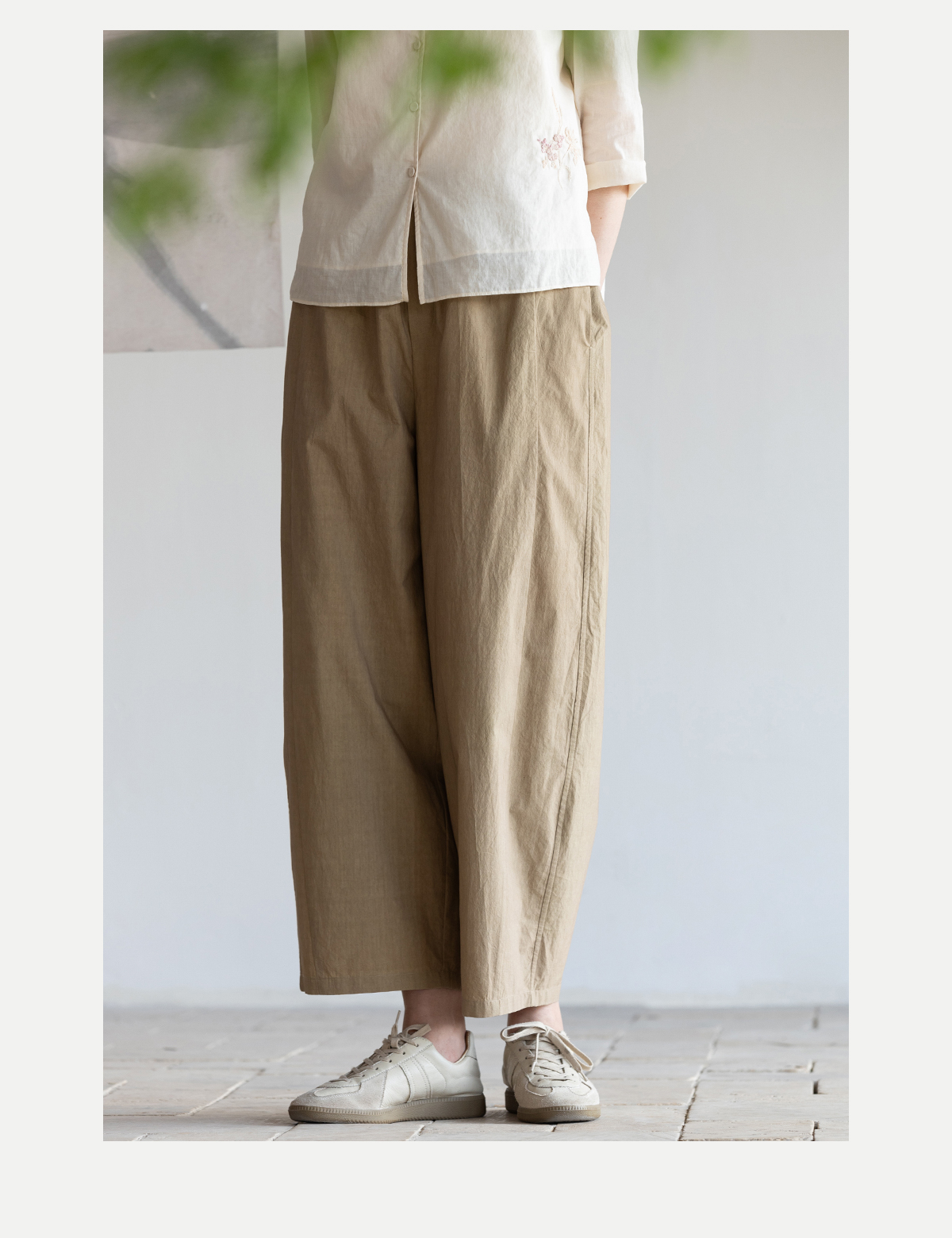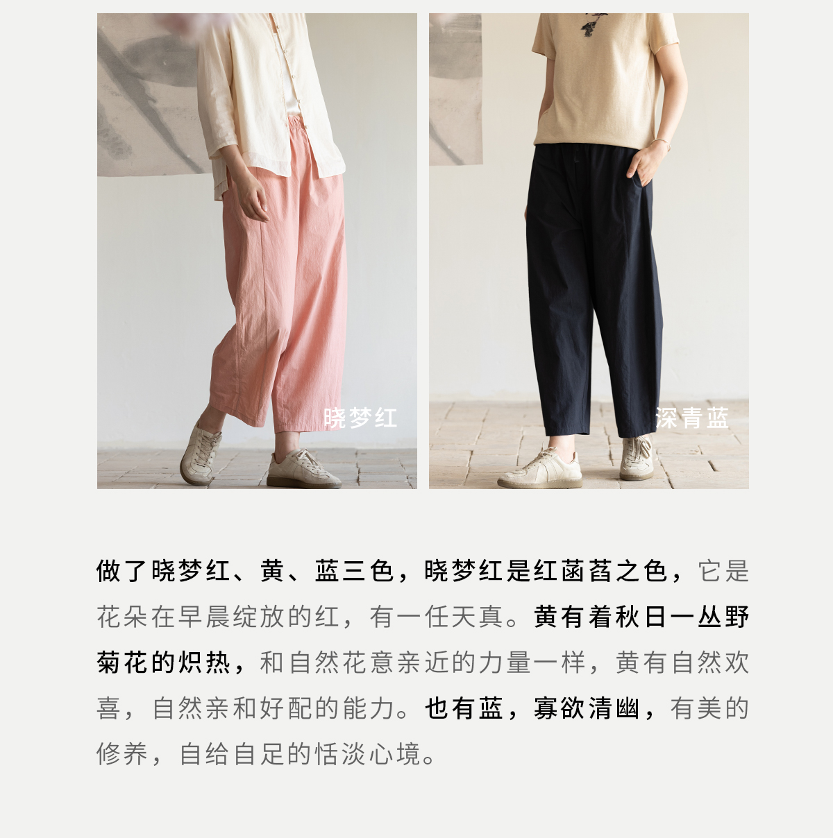 牧衣游原创 净色纯棉裤子女新品轻薄宽松显瘦百搭休闲九分裤 日游