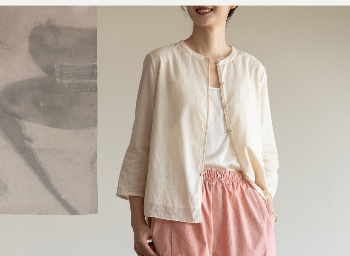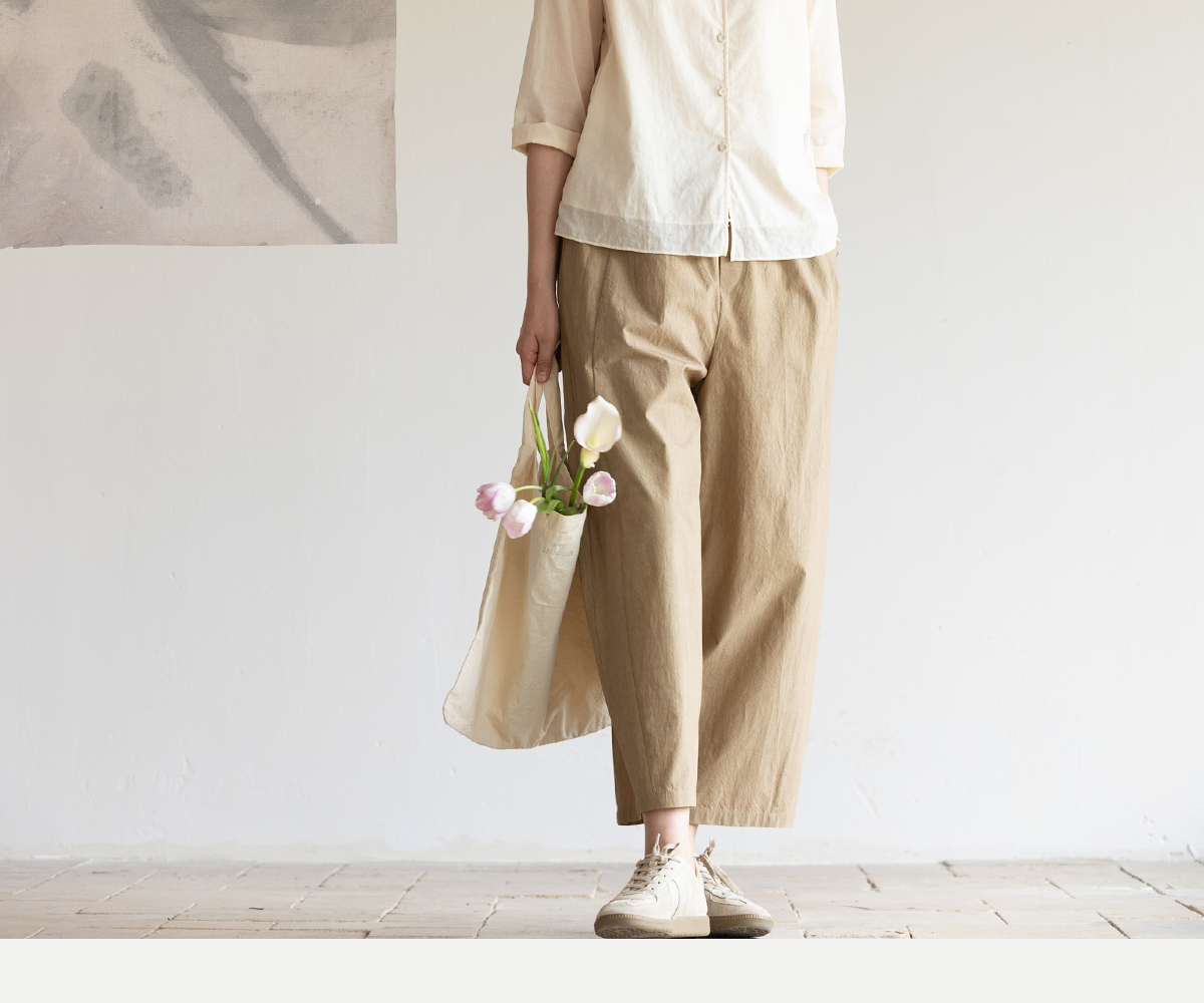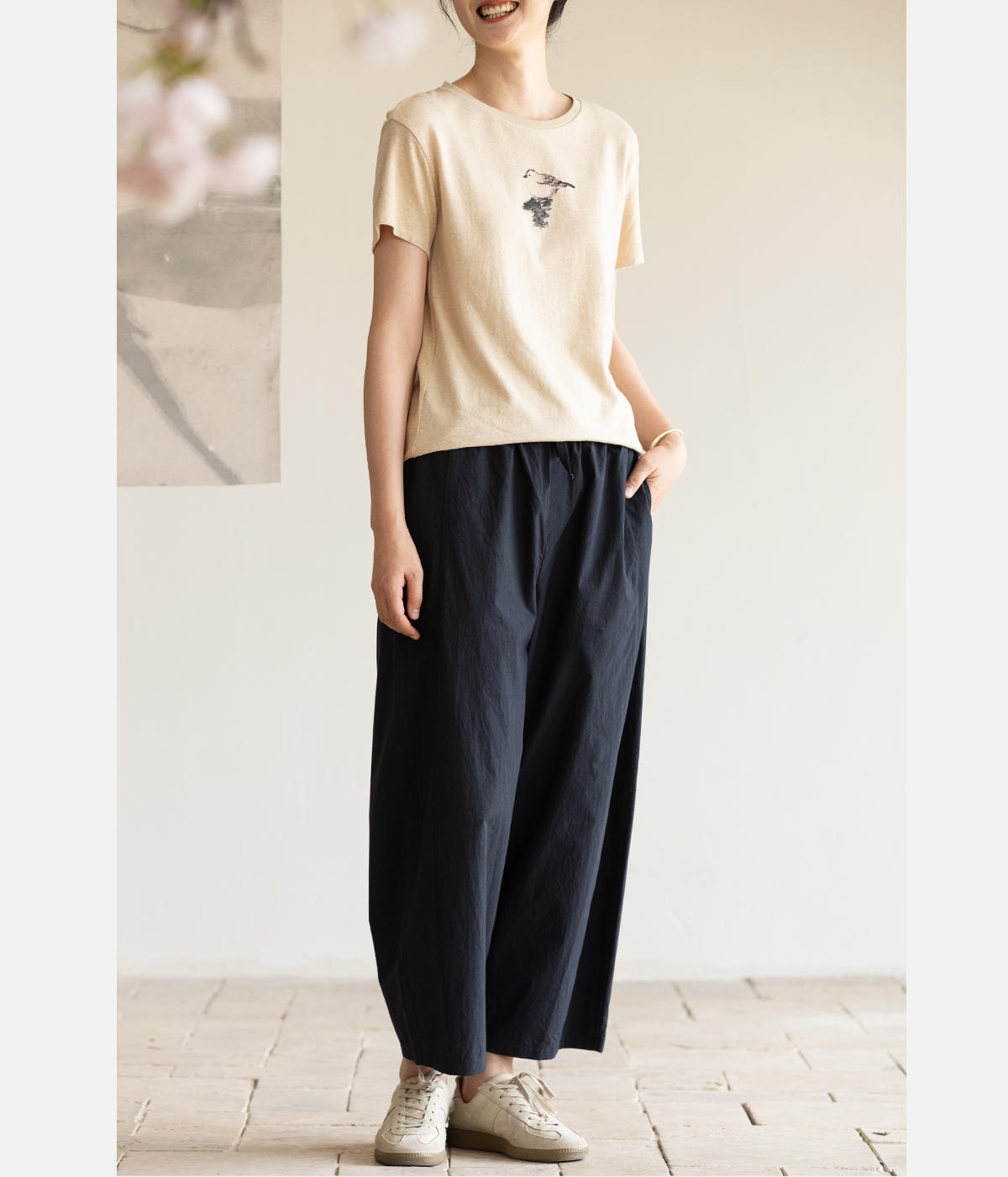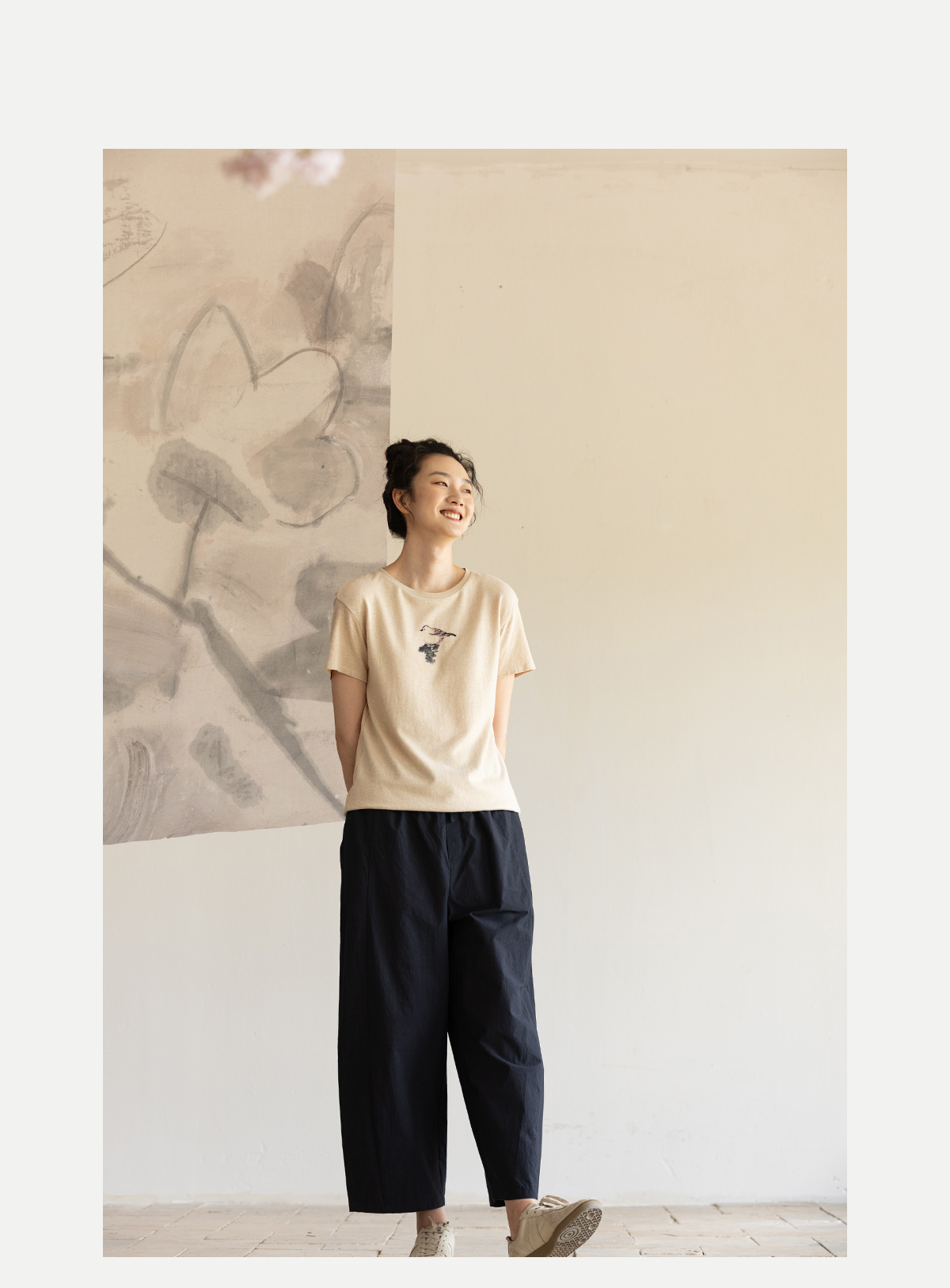 牧衣游原创 净色纯棉裤子女新品轻薄宽松显瘦百搭休闲九分裤 日游