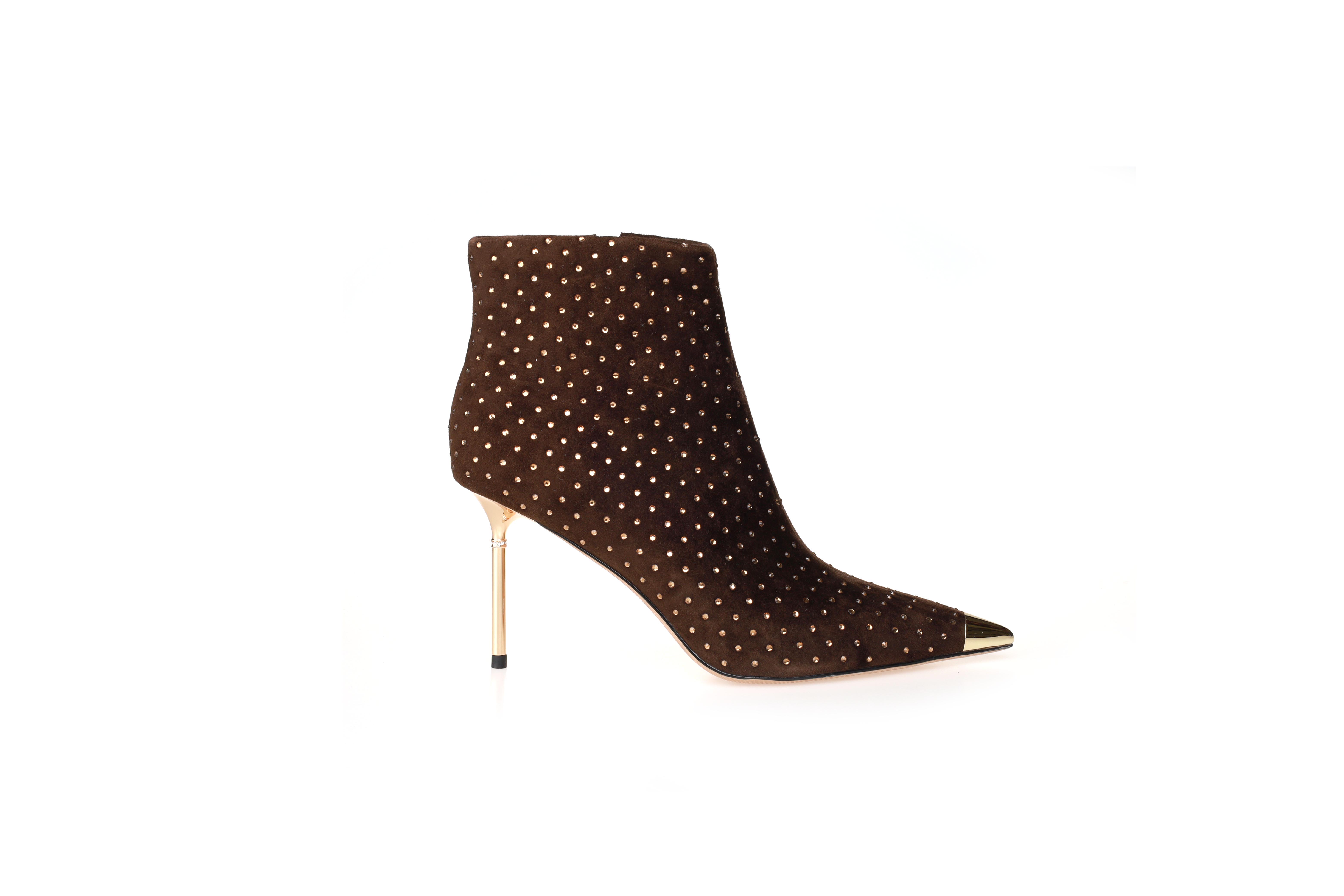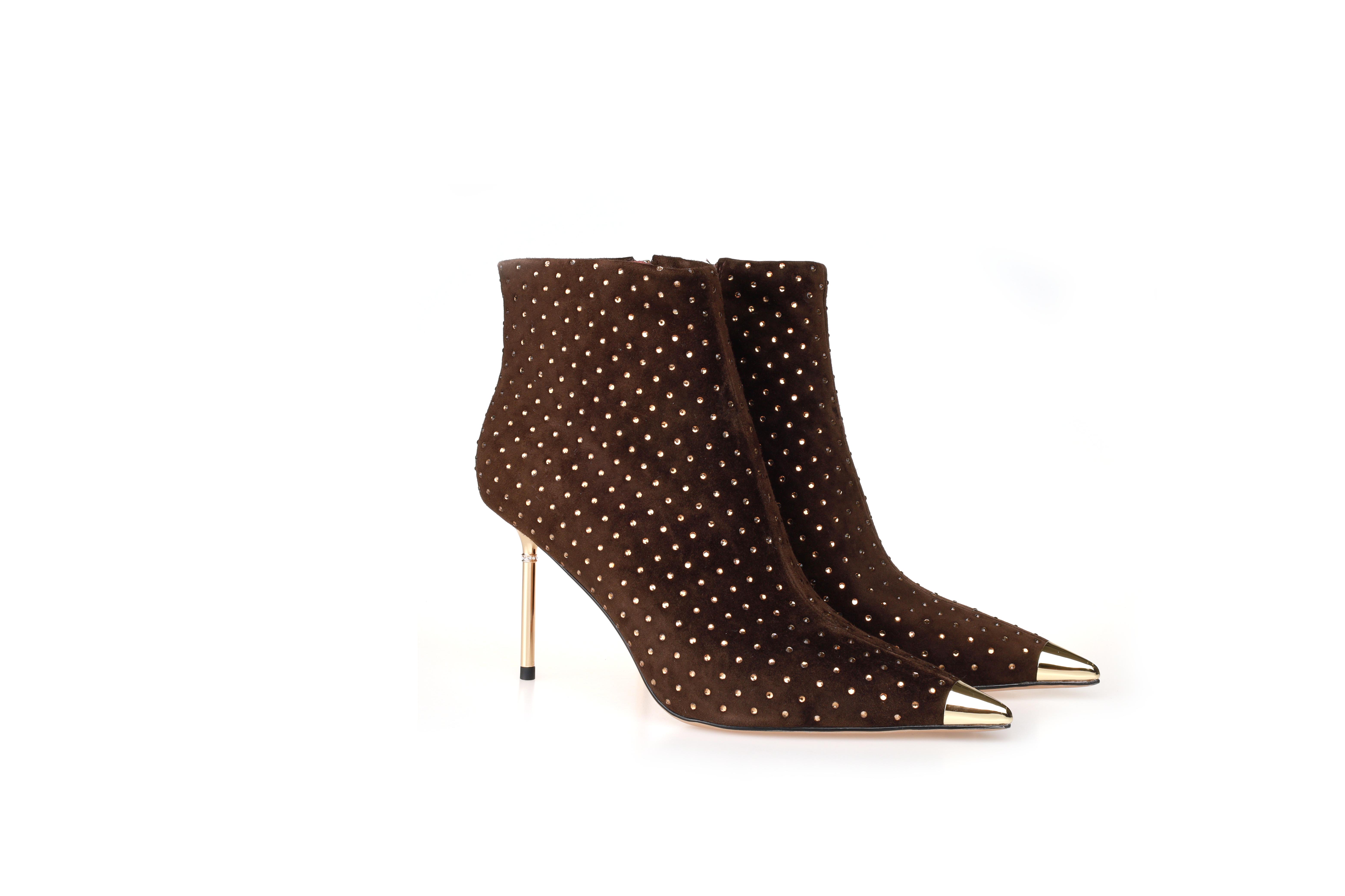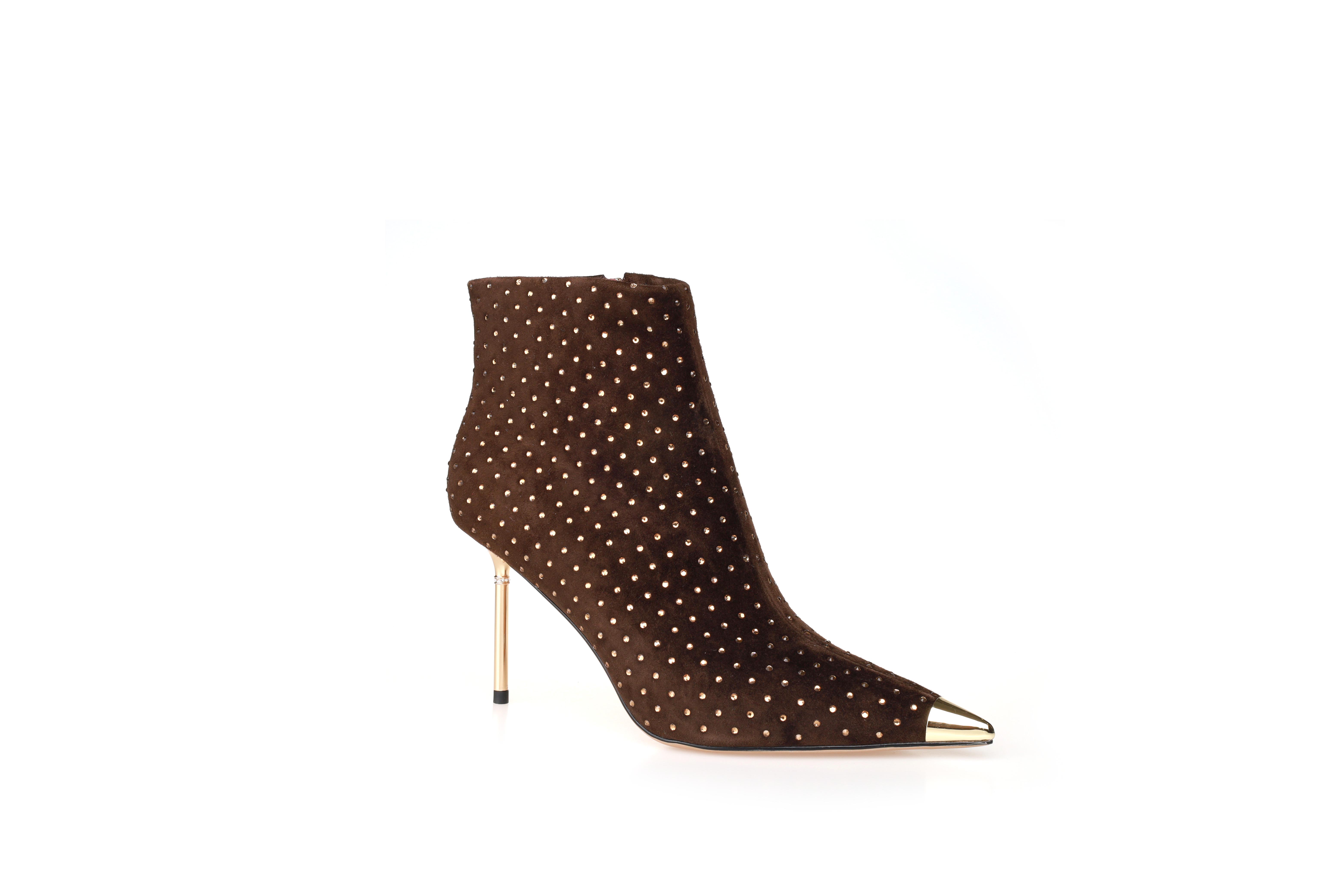 豪麟名鞋奥莱迪嘉女鞋短靴羊反绒面革DJELA32WN014咖啡色 原价2960元