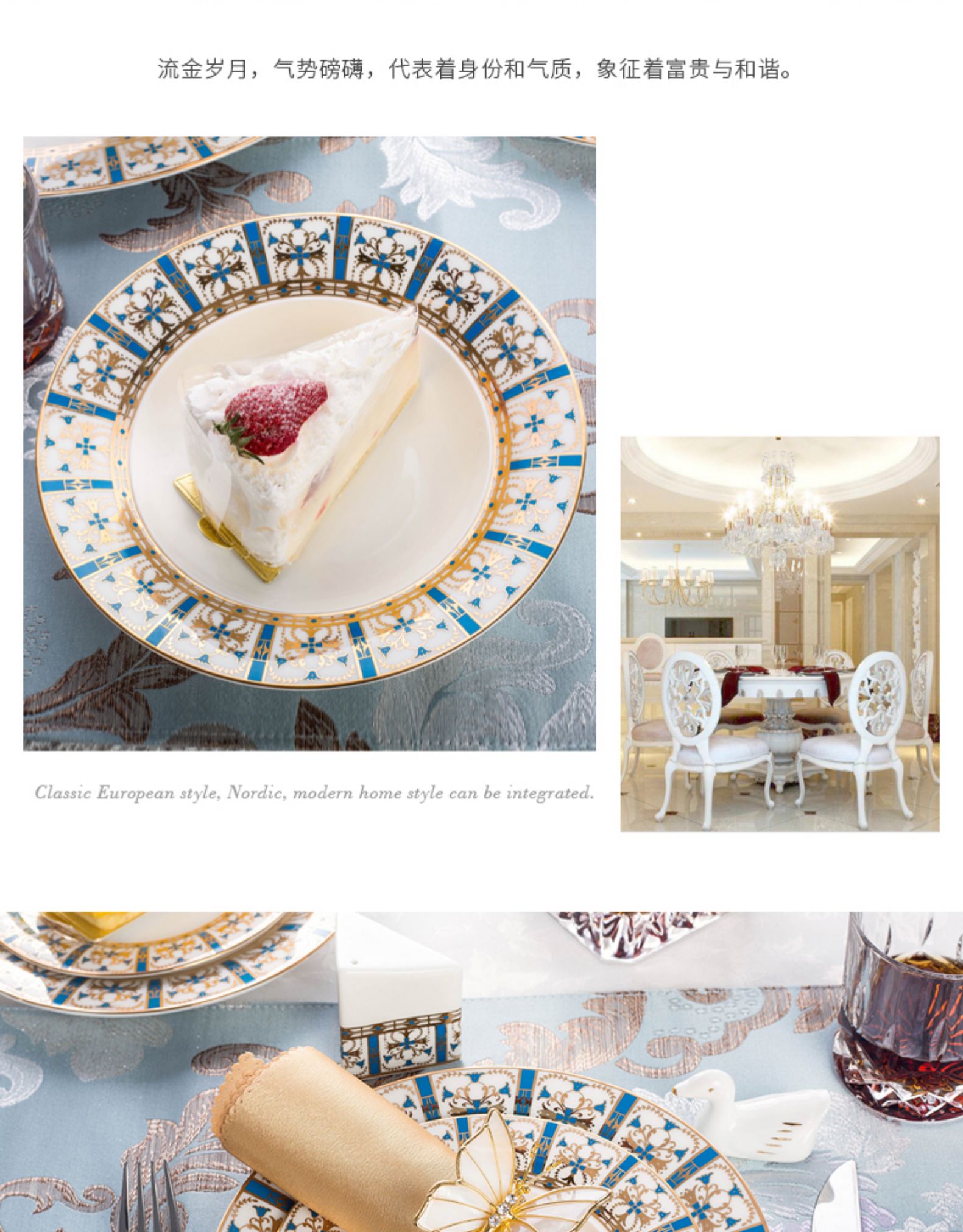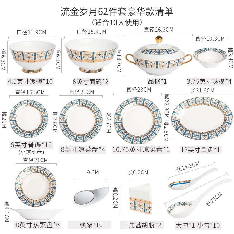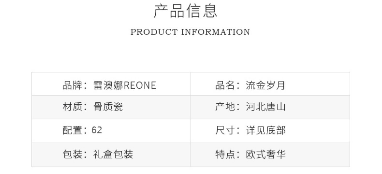 【清仓特惠3折,仅1套,运费自理或门店自提】雷澳娜REONE流金岁月高档骨瓷10人用62头中餐具【不支持补差,非质量问题不退不换】S