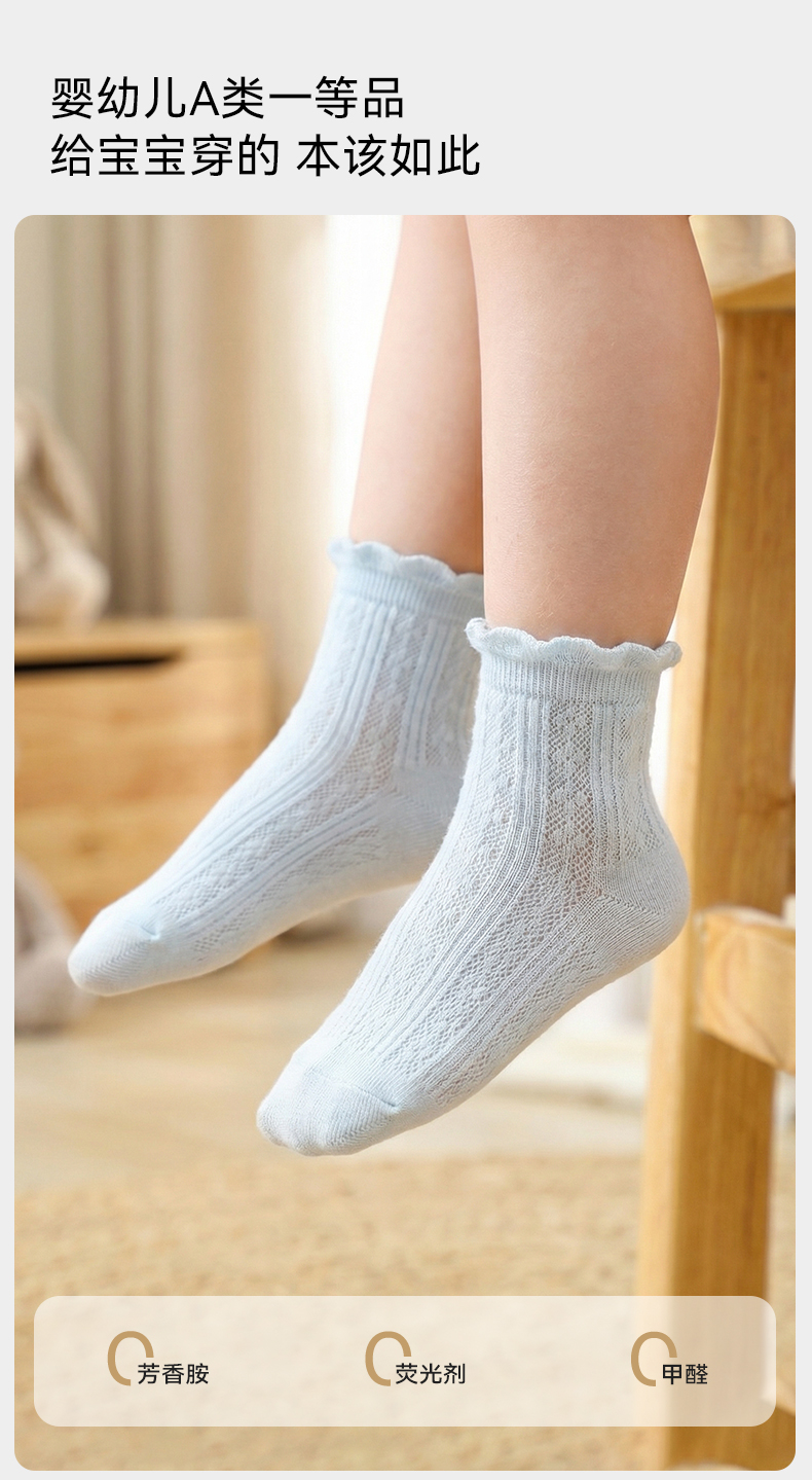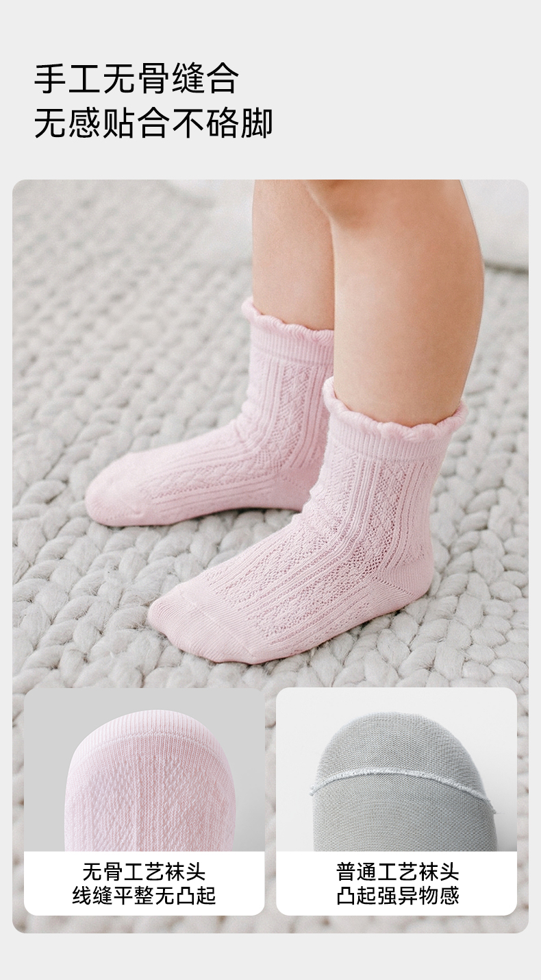 【母婴服配】嫚熙婴儿袜子网眼女童小月龄新生儿宝宝凉感夏季中筒袜