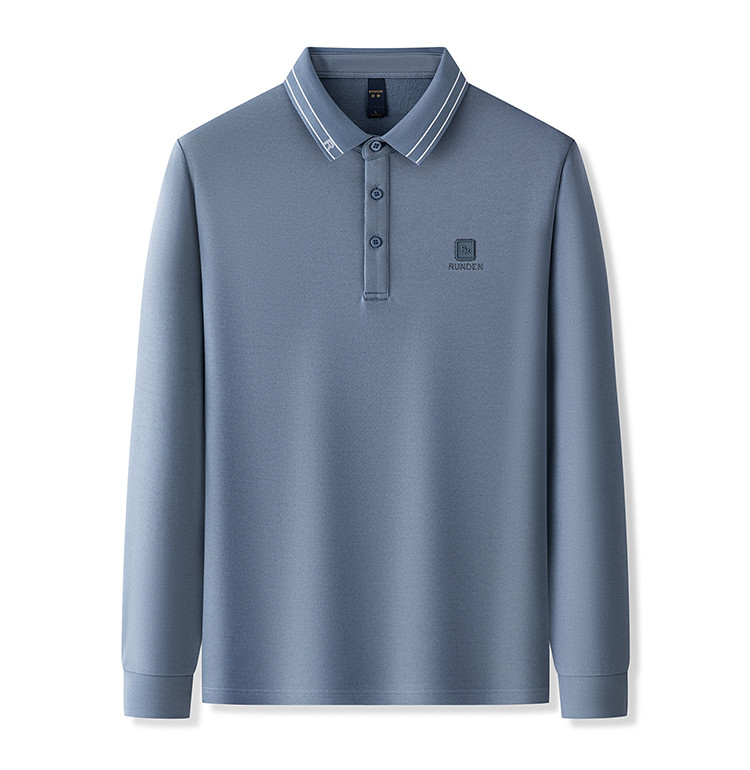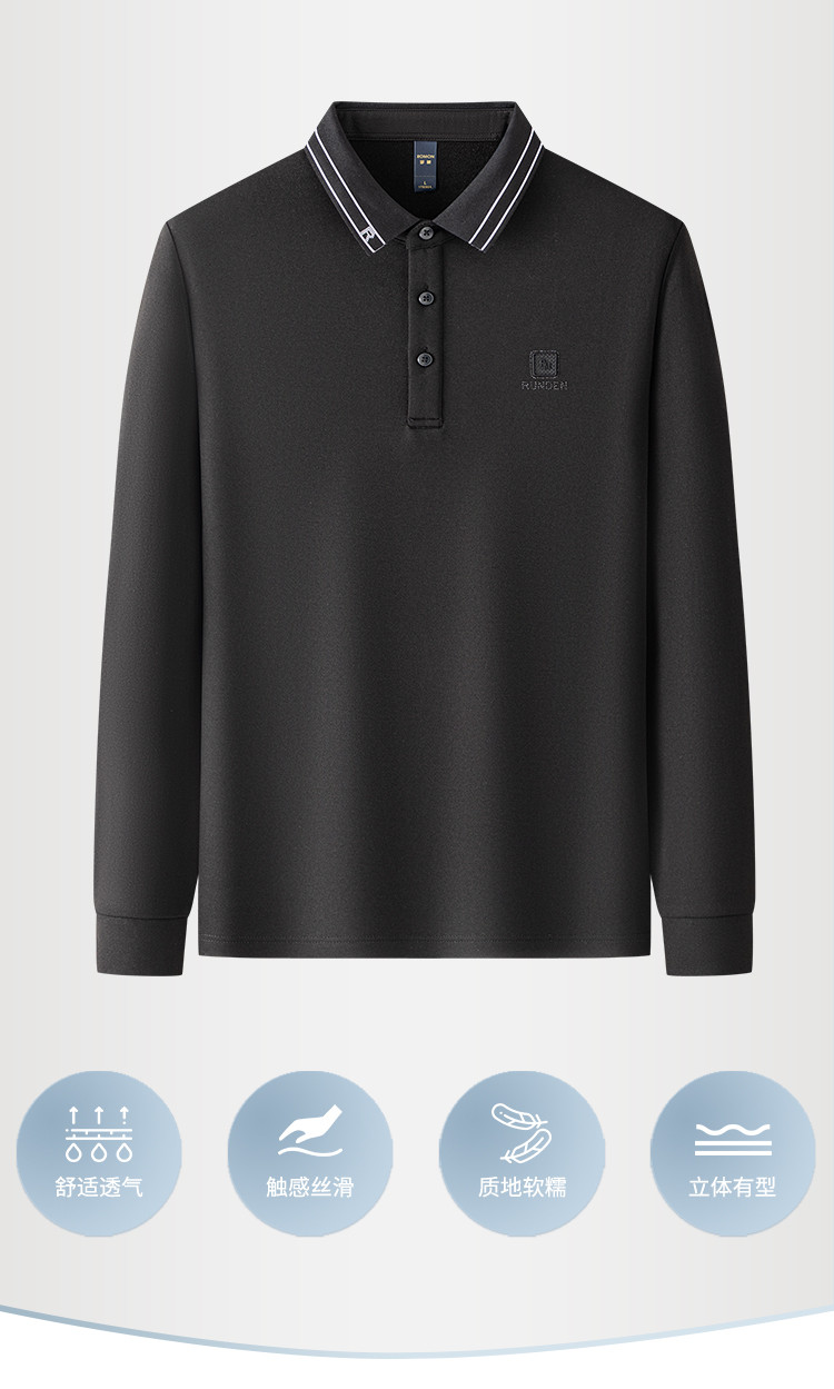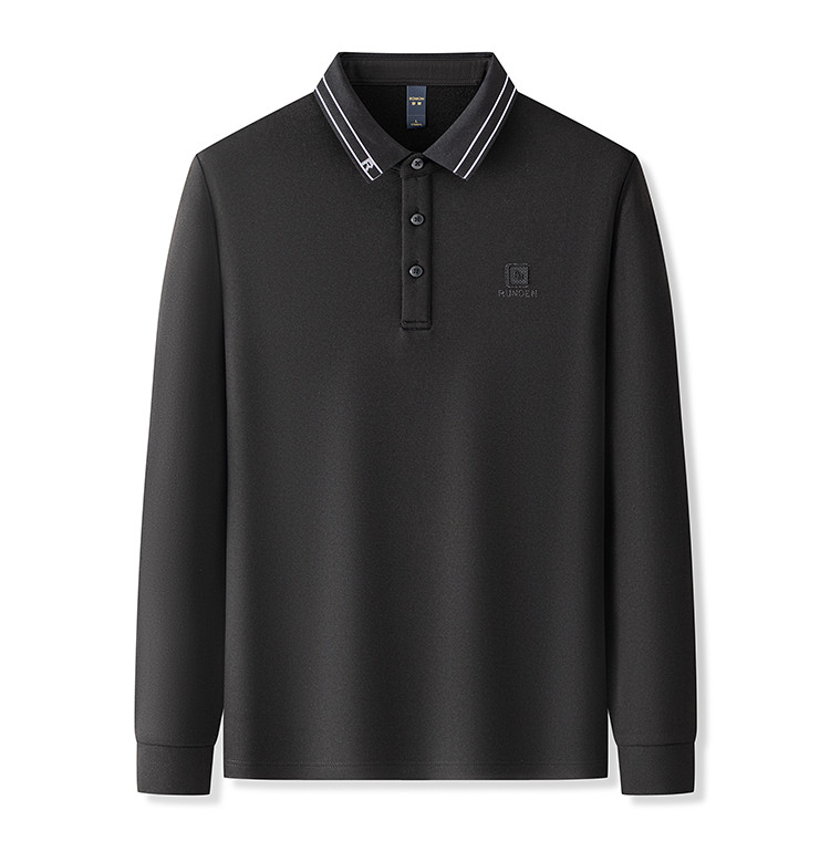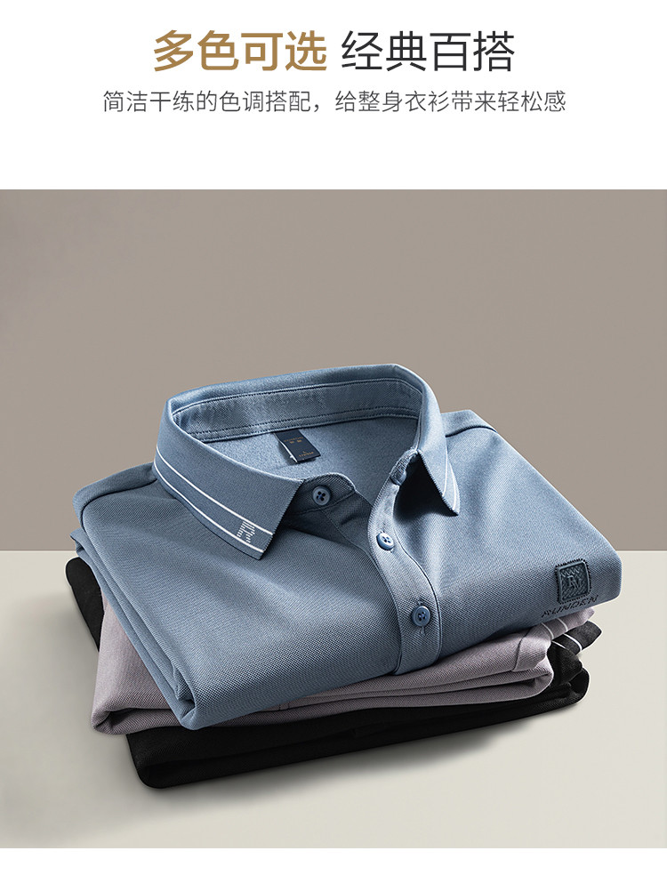罗蒙男士Polo衫秋冬含羊毛蚕丝保暖双面磨毛polo衫男长袖t恤男