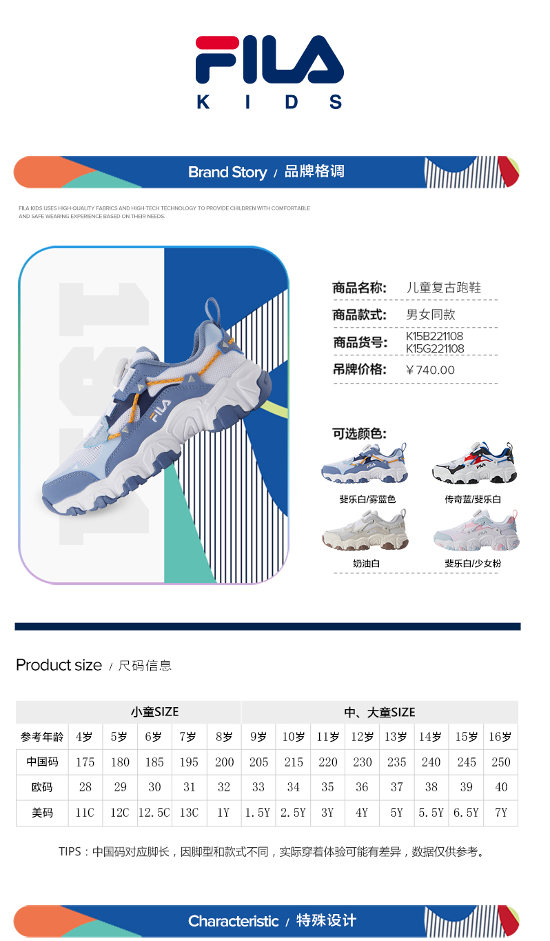 小斐乐儿童运动鞋2022夏季新款男女中大童猫爪鞋时尚跑步鞋K15B221108F/K15G221108F
