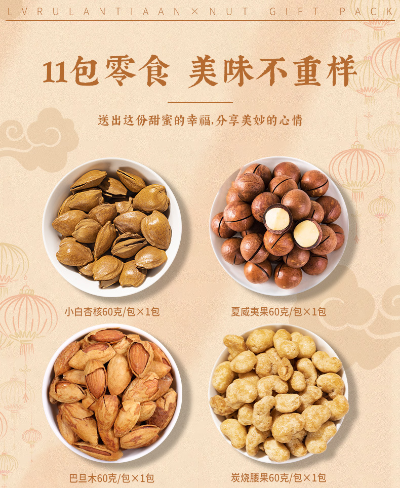「多种坚果!美味不重样」坚果礼盒混合坚果大礼包1100g/盒 夏威夷果巴旦木零食