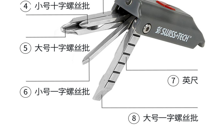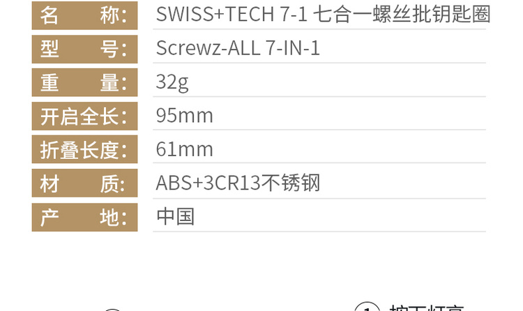 瑞士科技SWISS+TECH 创意多用钥匙圈工具随身便携小工具带LED礼品