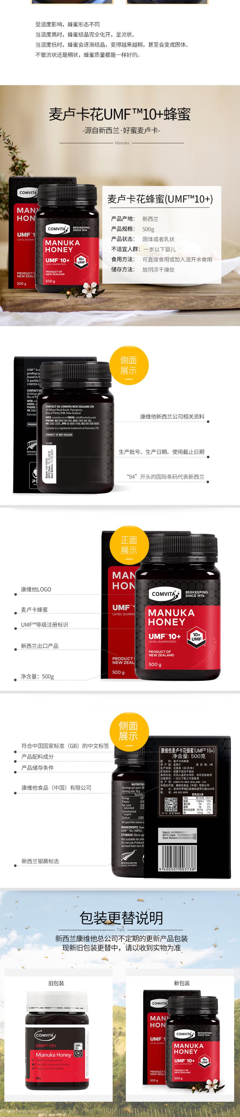 【特卖】comvita 康维他 麦卢卡花蜂蜜(UMF10+)500g【保质期:26年3月】