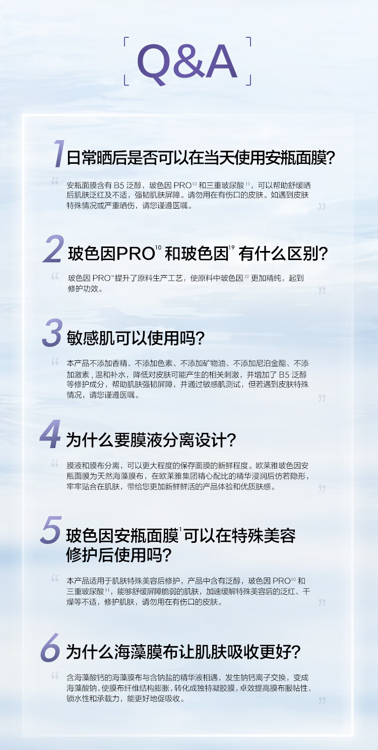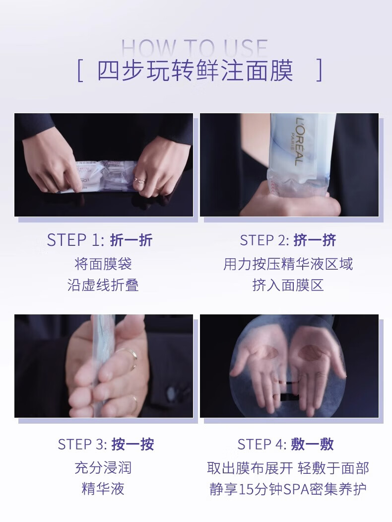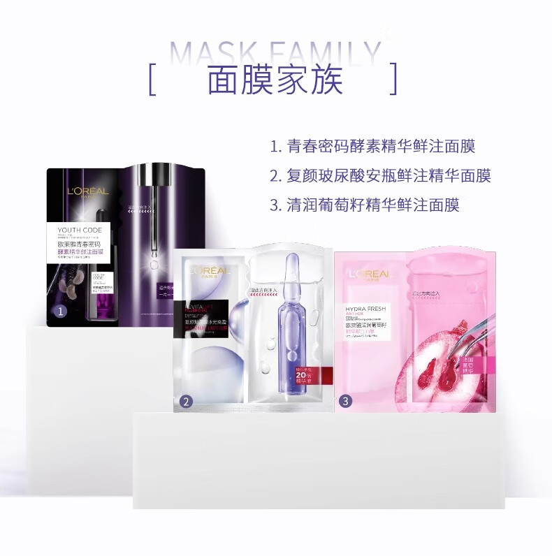 欧莱雅 复颜玻尿酸水光充盈导入安瓶鲜注精华面膜5片装