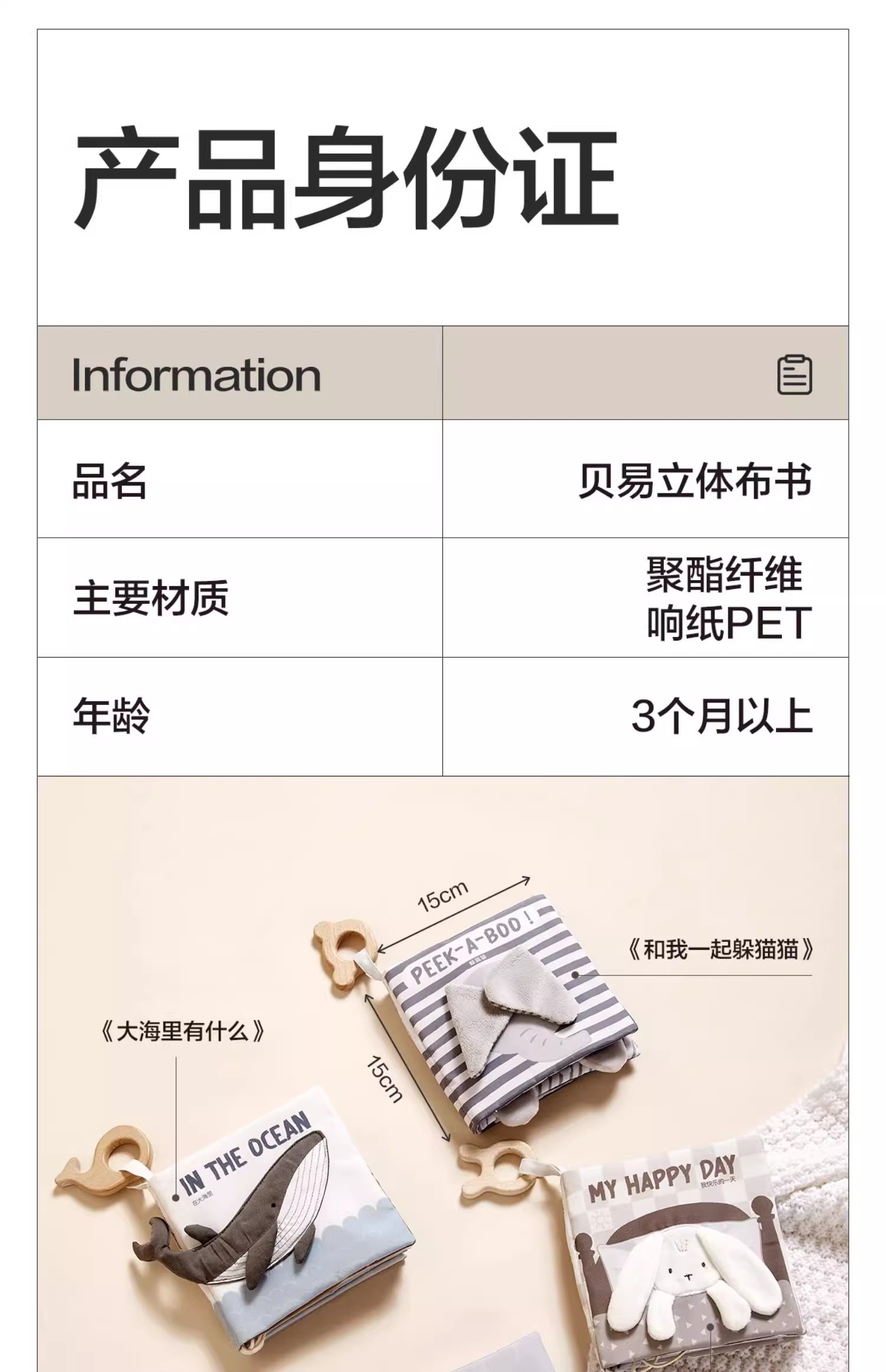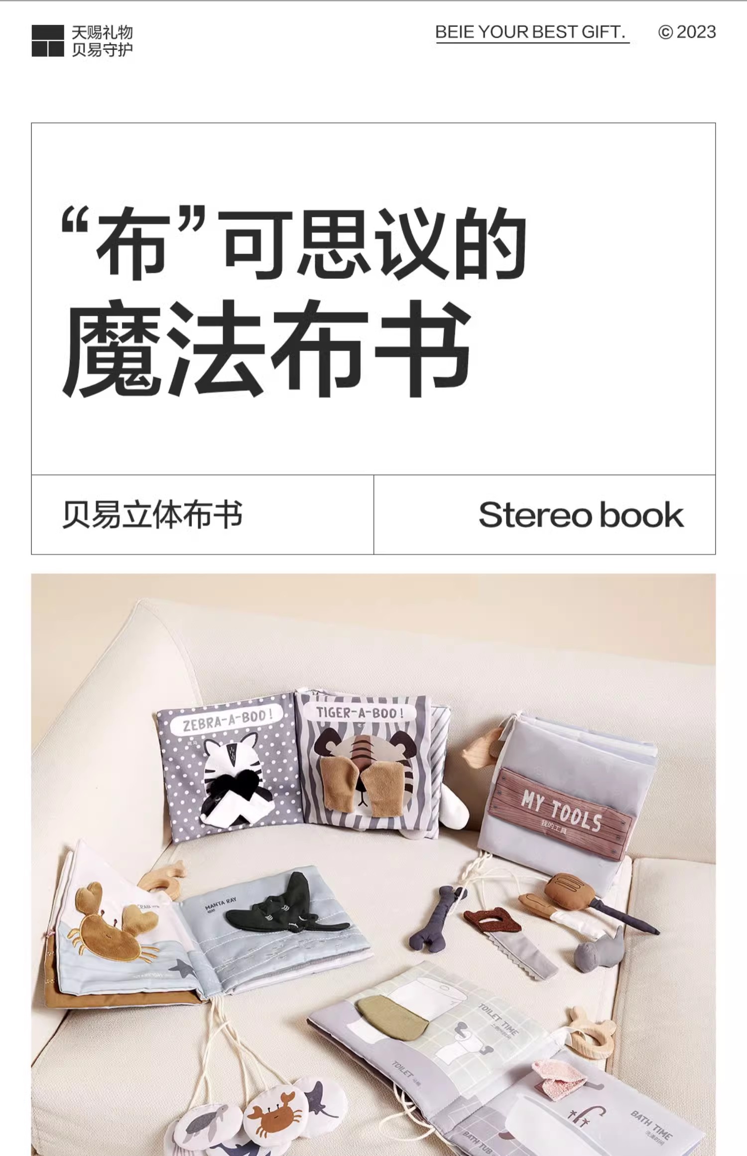 贝易立体布书婴儿早教撕不烂可啃咬6-12个月宝宝认知益智玩具