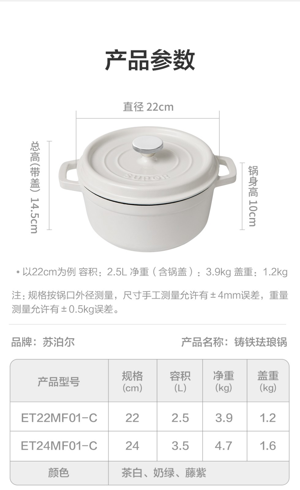 苏泊尔 汤锅珐琅锅铸铁锅炖锅煮锅 直径24cm