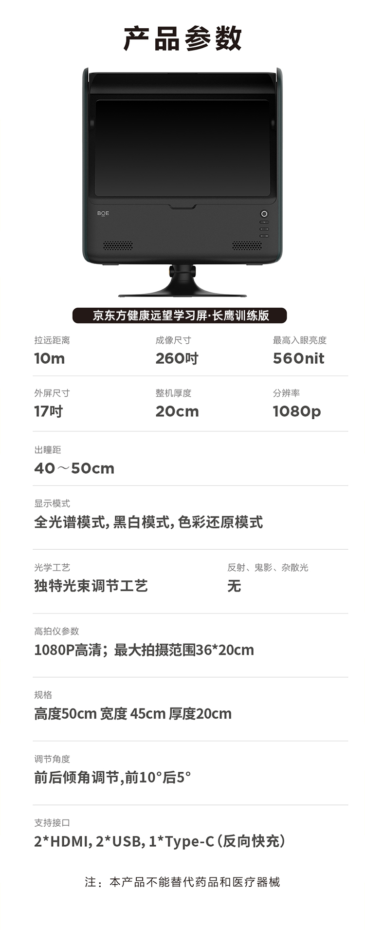 京东方健康远望学习屏 新品长鹰标准版/训练版 10米桌面望远镜