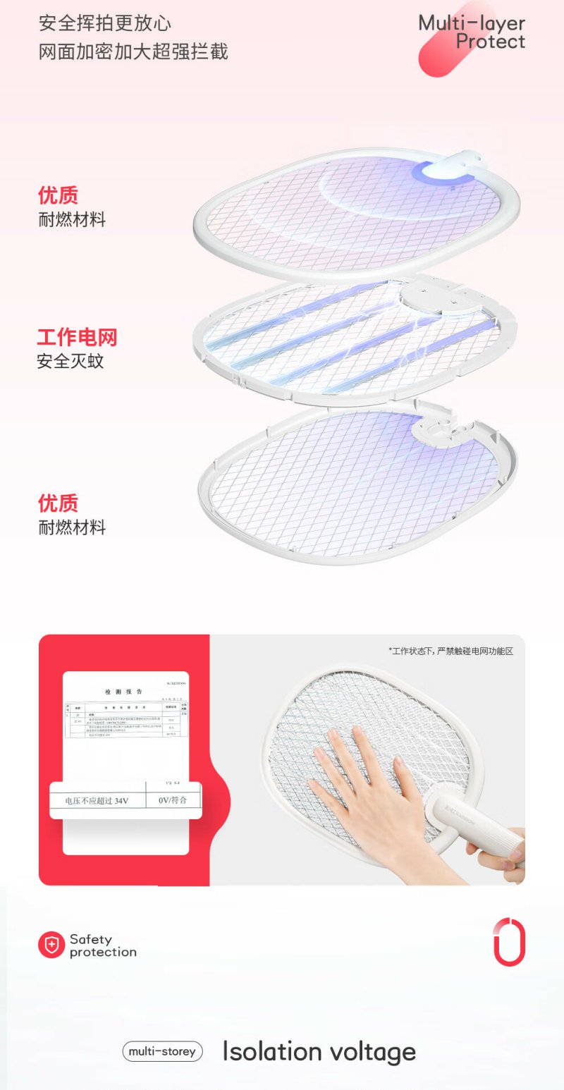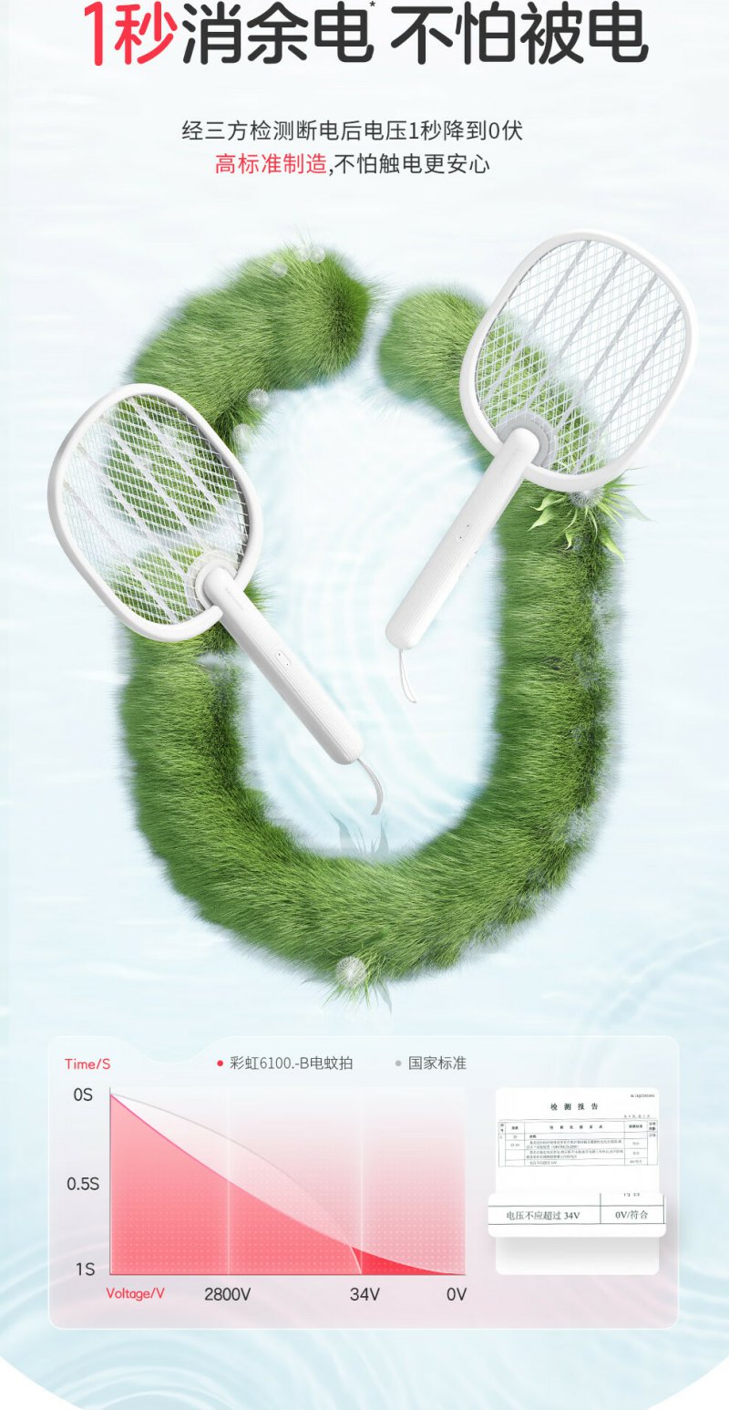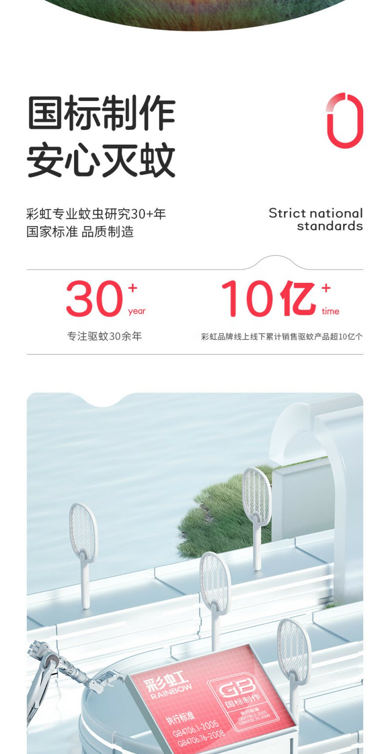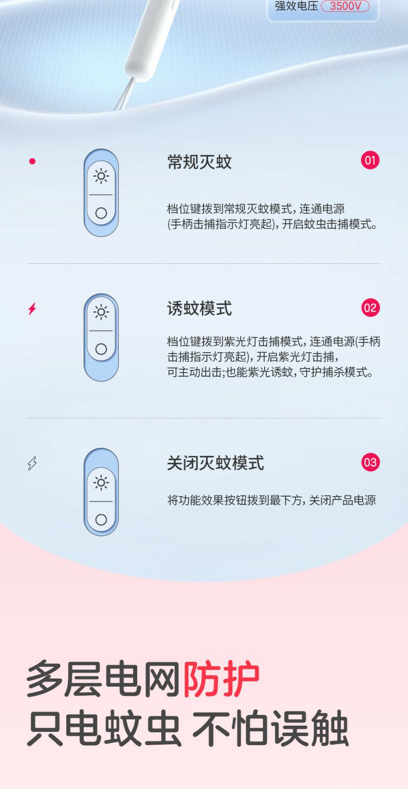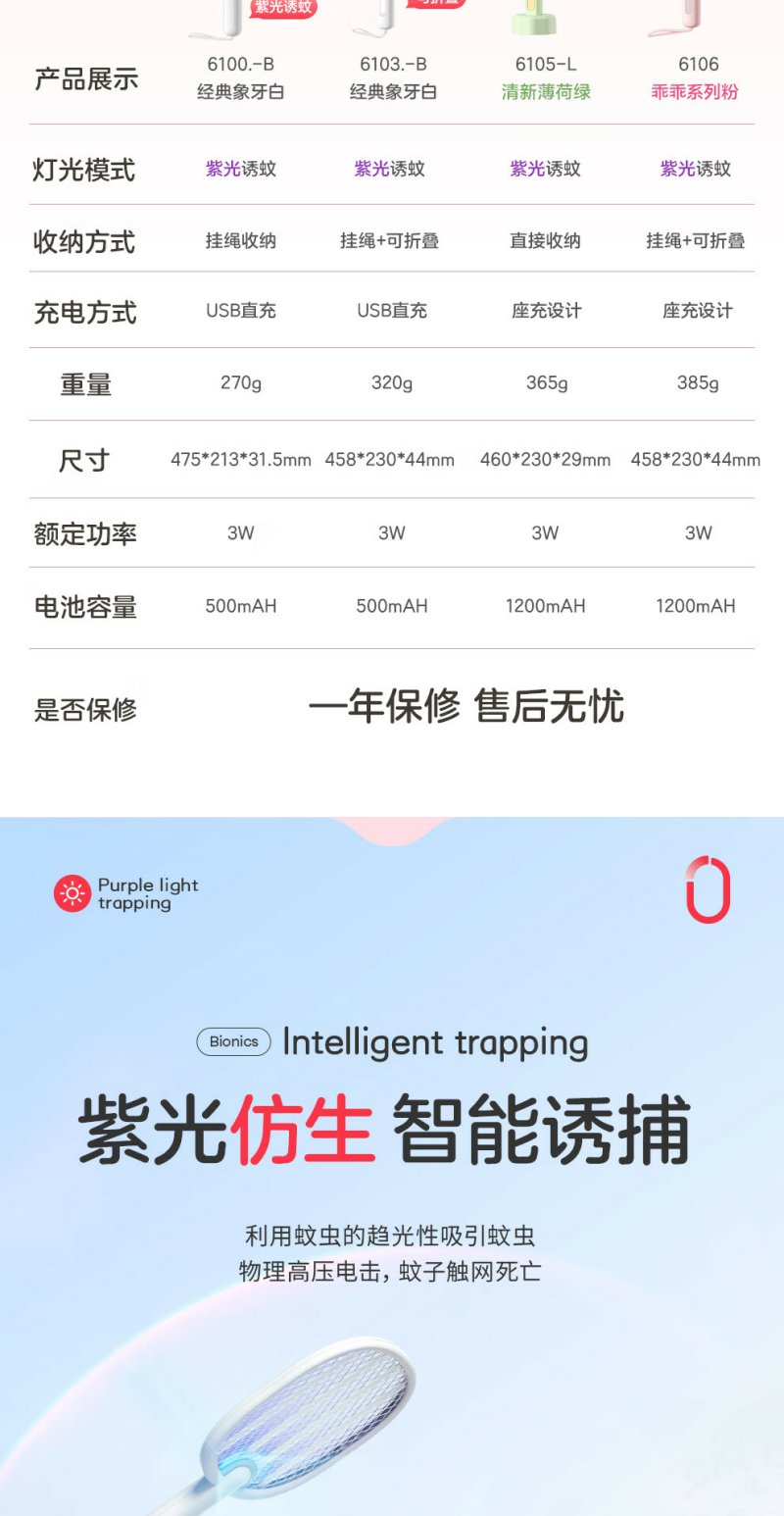 彩虹 电蚊拍 乖乖电蚊拍-二合一诱蚊折叠充电款(粉色)6106