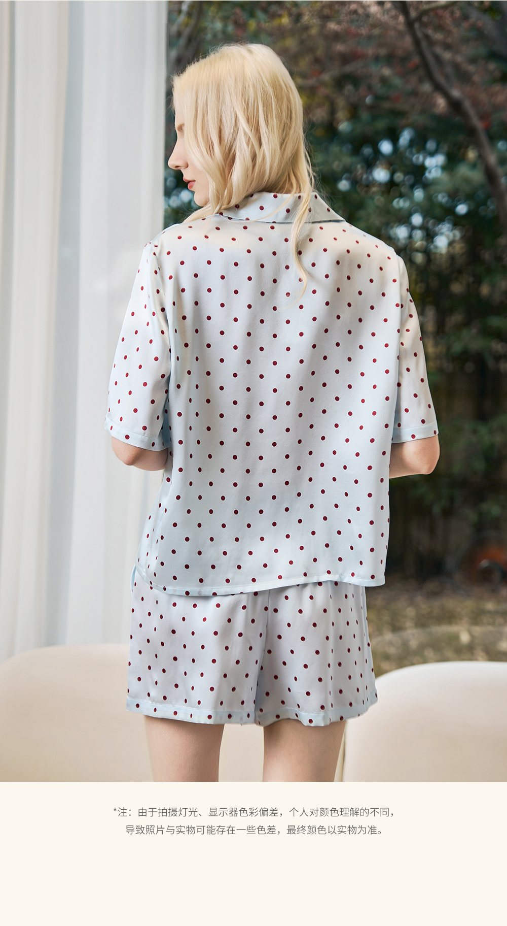 Solo seta22姆米女士真丝短袖短裤睡衣套装桑蚕丝波点马年家居服