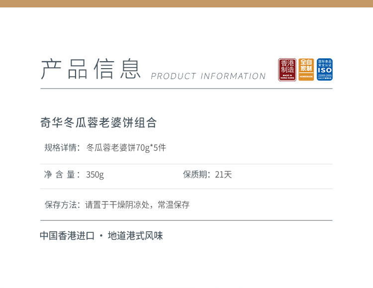 奇华老婆饼保质期为21天,因所有产品都是中国香港制作,需报关清关,再运输到深圳仓库发货,加上快递运输,到您手上保质期预计剩7-10天左右。请您收到后尽快食用!因效期较短,老婆饼不支持7天无理由退换货!