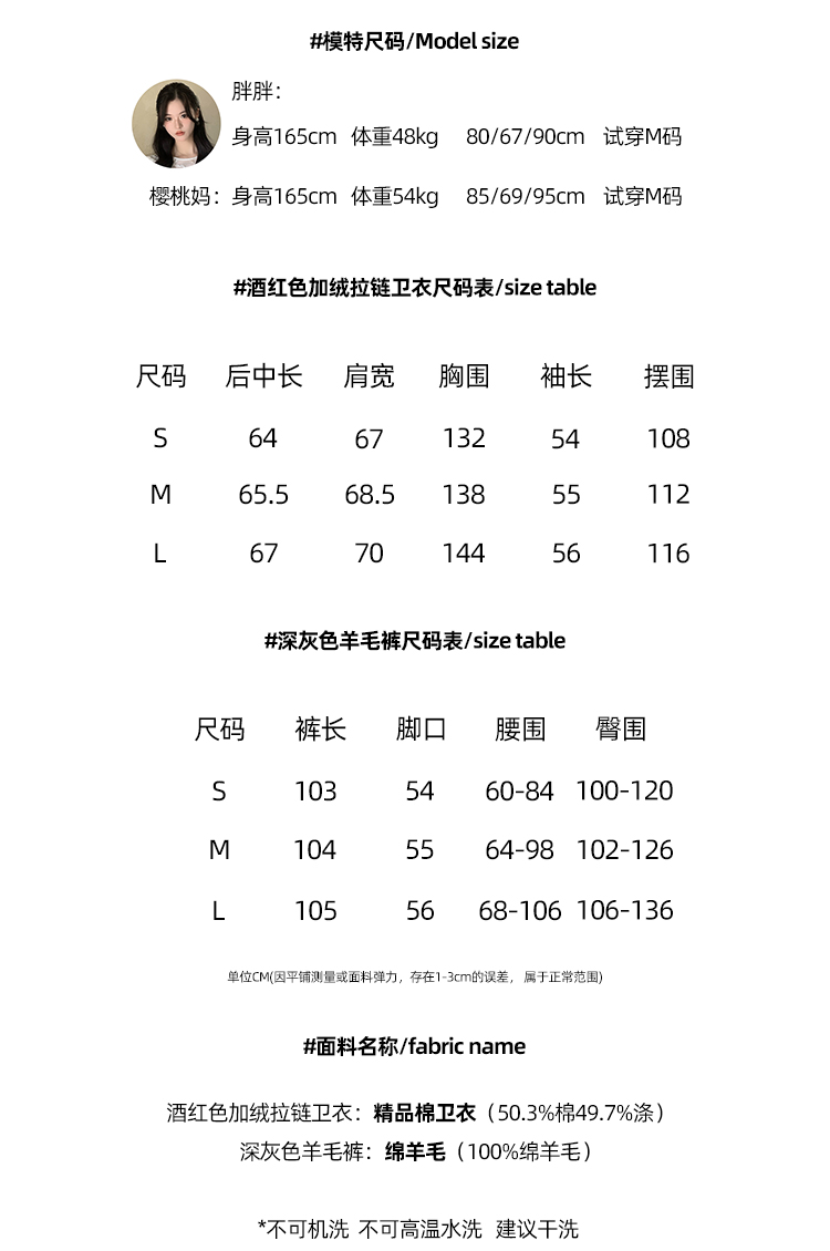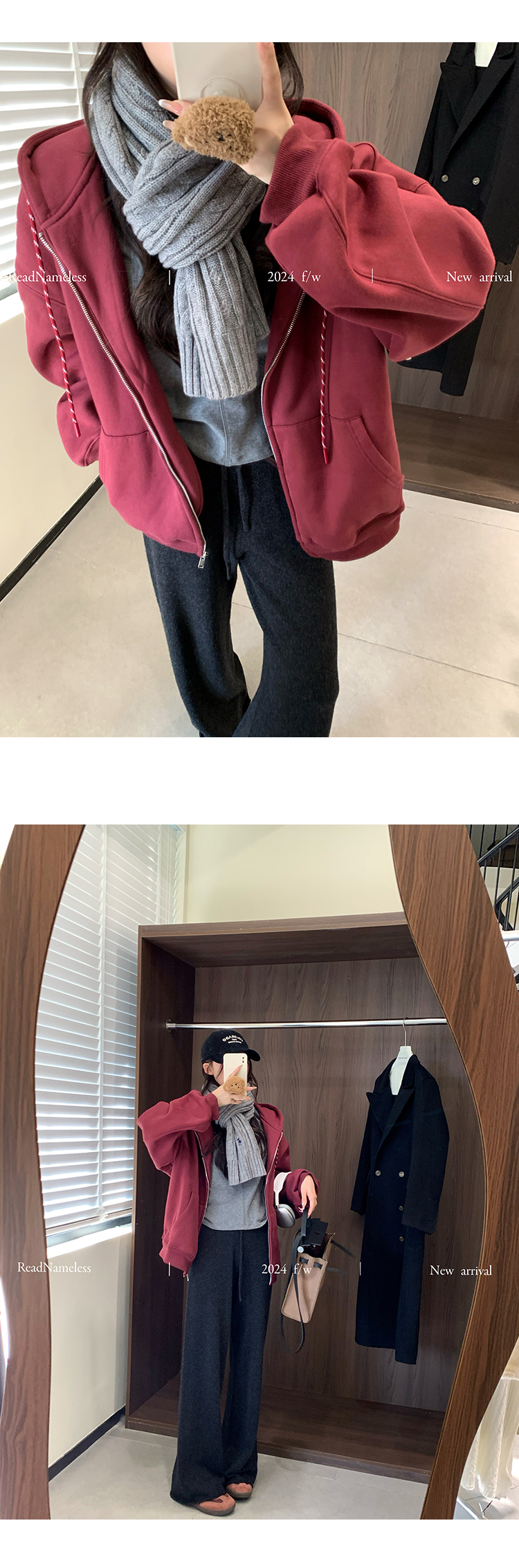 Read Nameless /酒红色加绒拉链卫衣+深灰色羊毛裤 2024/11/4