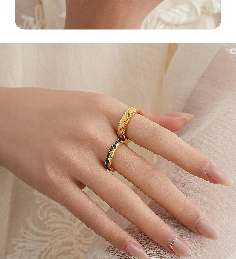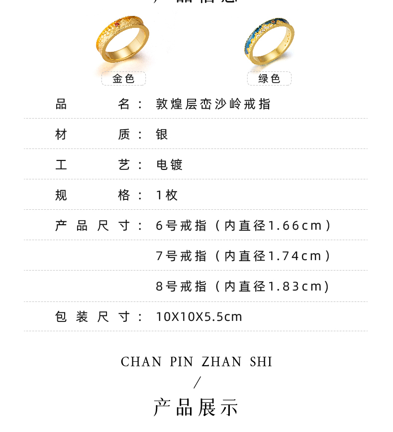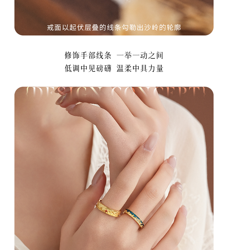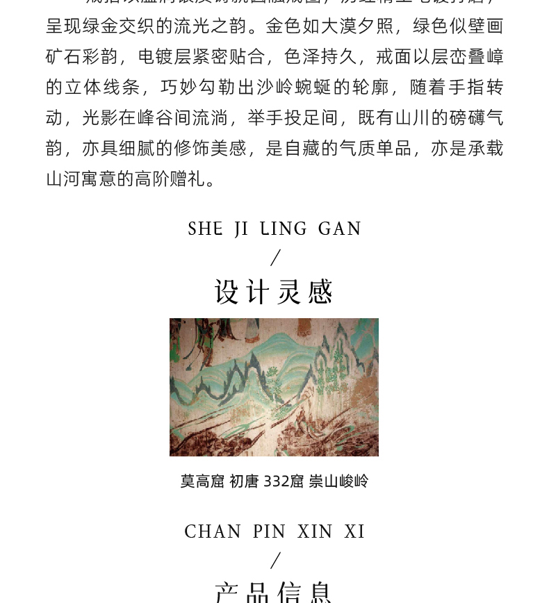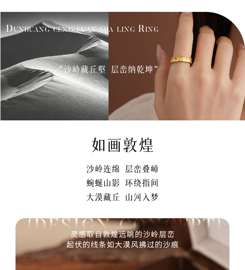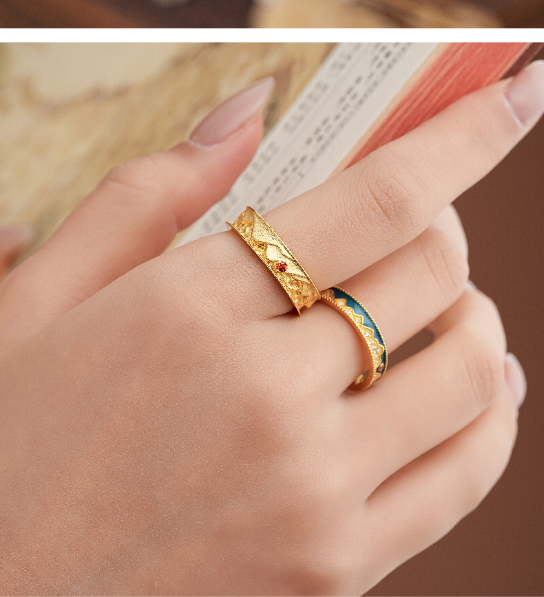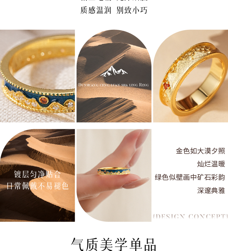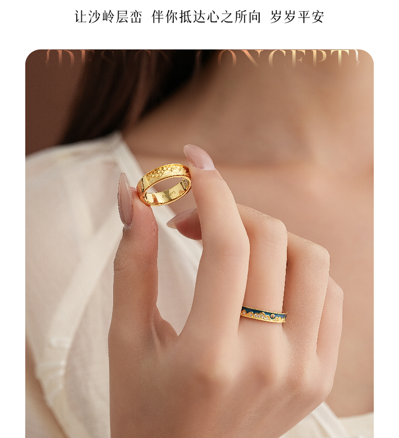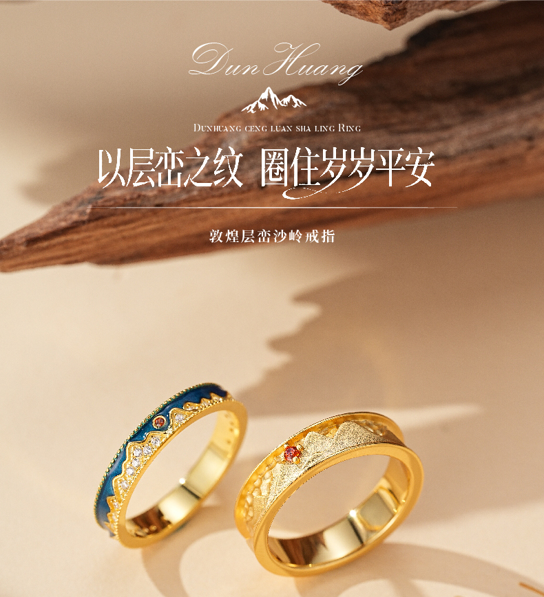 敦煌研究院【敦煌层峦沙岭对戒】 博物馆文创戒指S925银戒指轻奢简约情侣对戒情人节