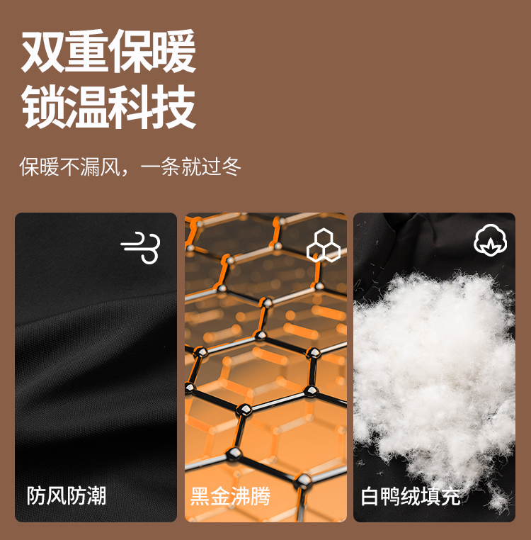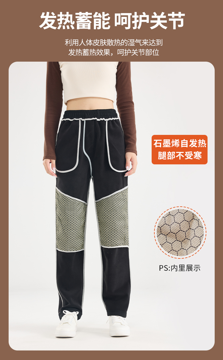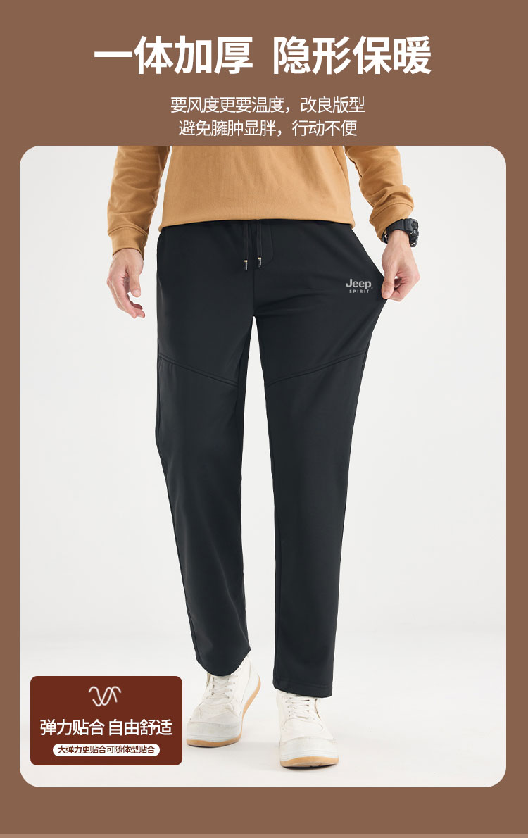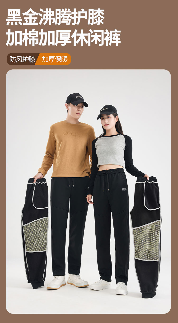优选丨【吉普JEEP SPIRIT 情侣护膝羽绒裤6681款】防风防潮护膝 加厚保暖休闲裤 石墨烯发热 聚热锁温