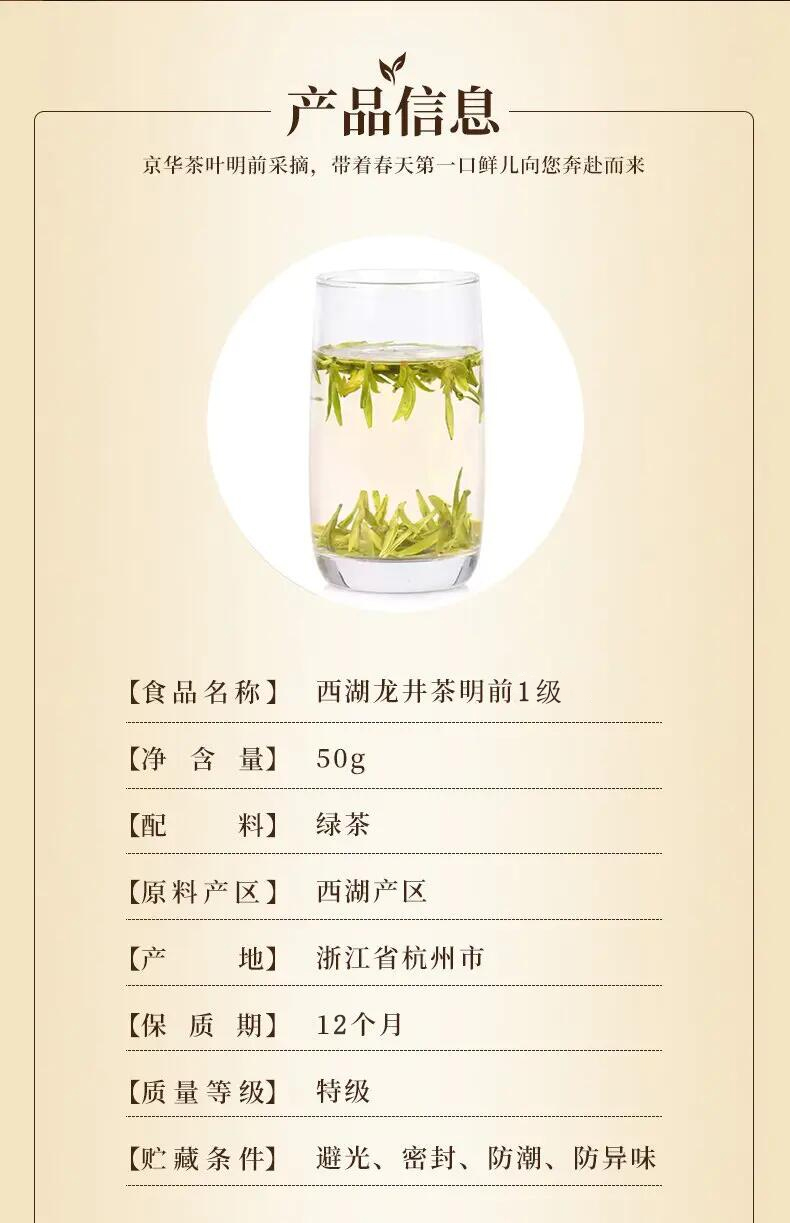 【推荐】2022年 新茶西湖龙井茶 50g 明前一级