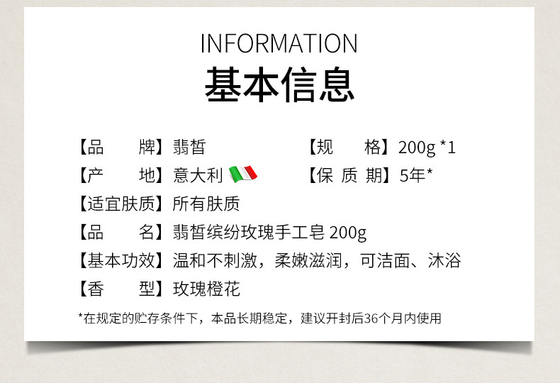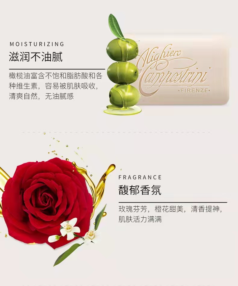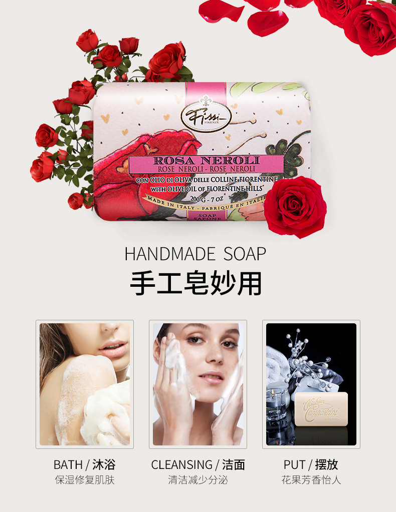意大利翡皙橄榄滋润手工皂 200g/ 翡皙缤纷玫瑰手工皂 200g 原装进口