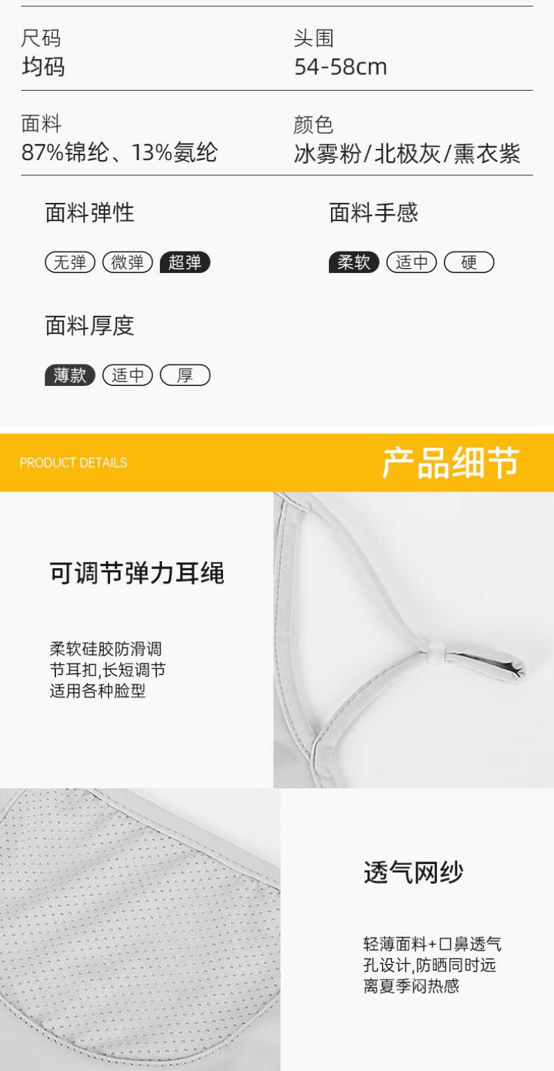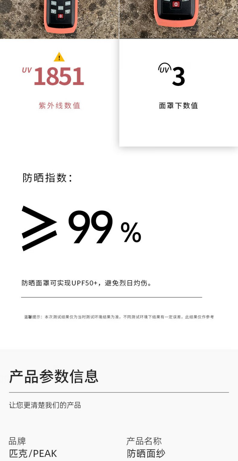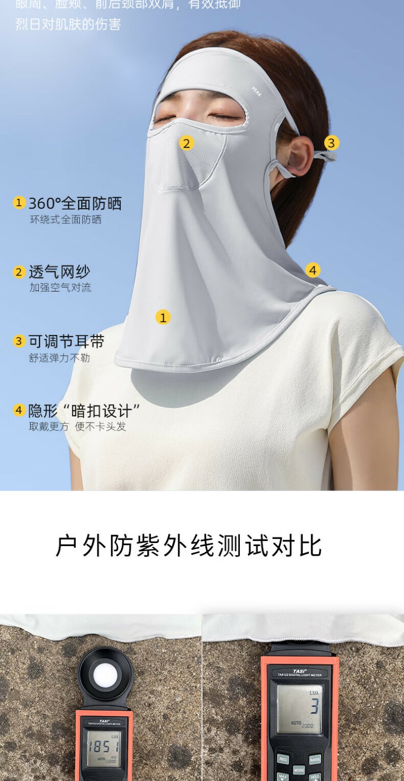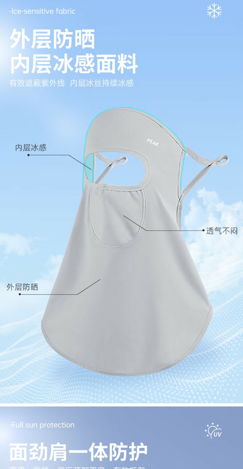 匹克(PEAK) 冰丝全脸防晒面罩 夏季户外防紫外线脸基尼 YH72106