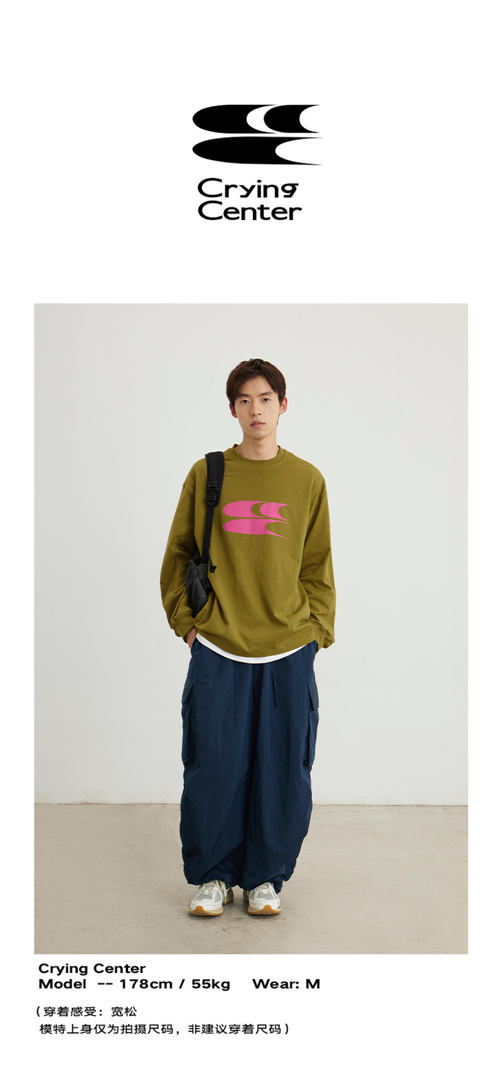CryingCenter 经典3C LOGO圆领套头长袖T恤索罗娜面料 哭喊中心