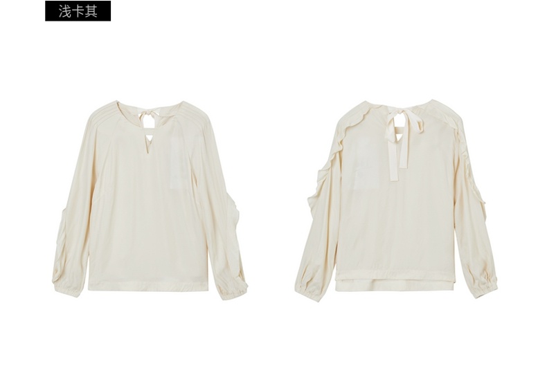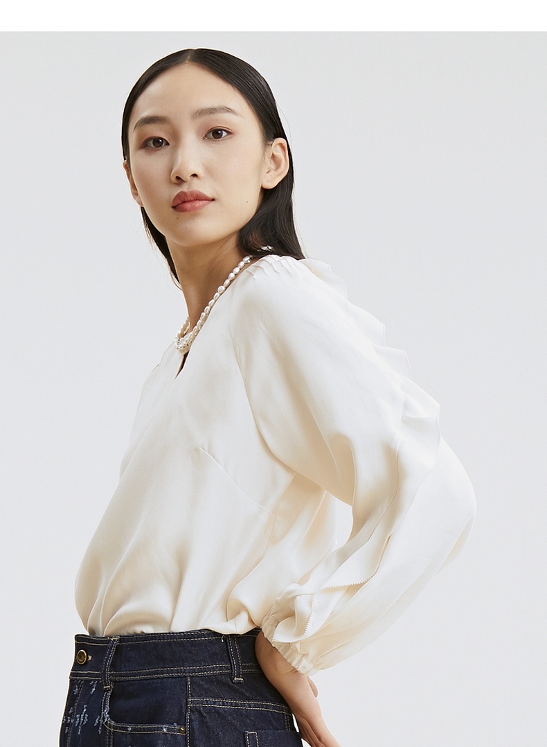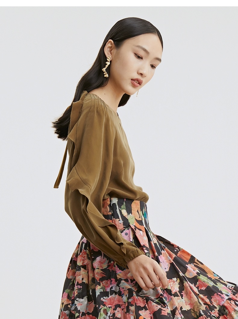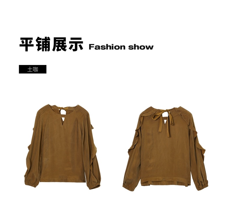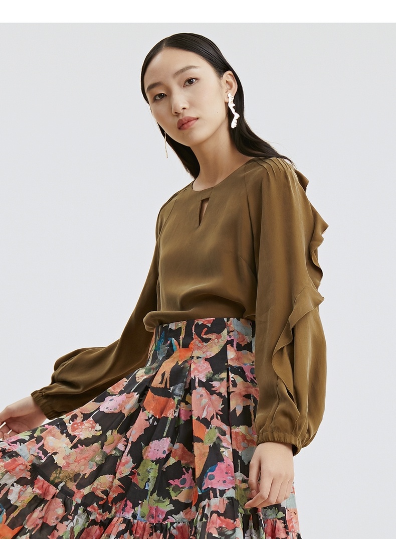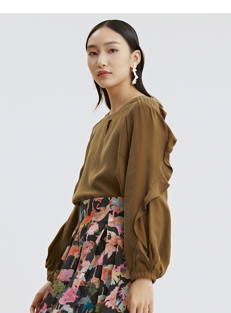 谜底2021秋季新款甜美优雅荷叶袖宽松长袖铜氨丝上衣女213MS1661