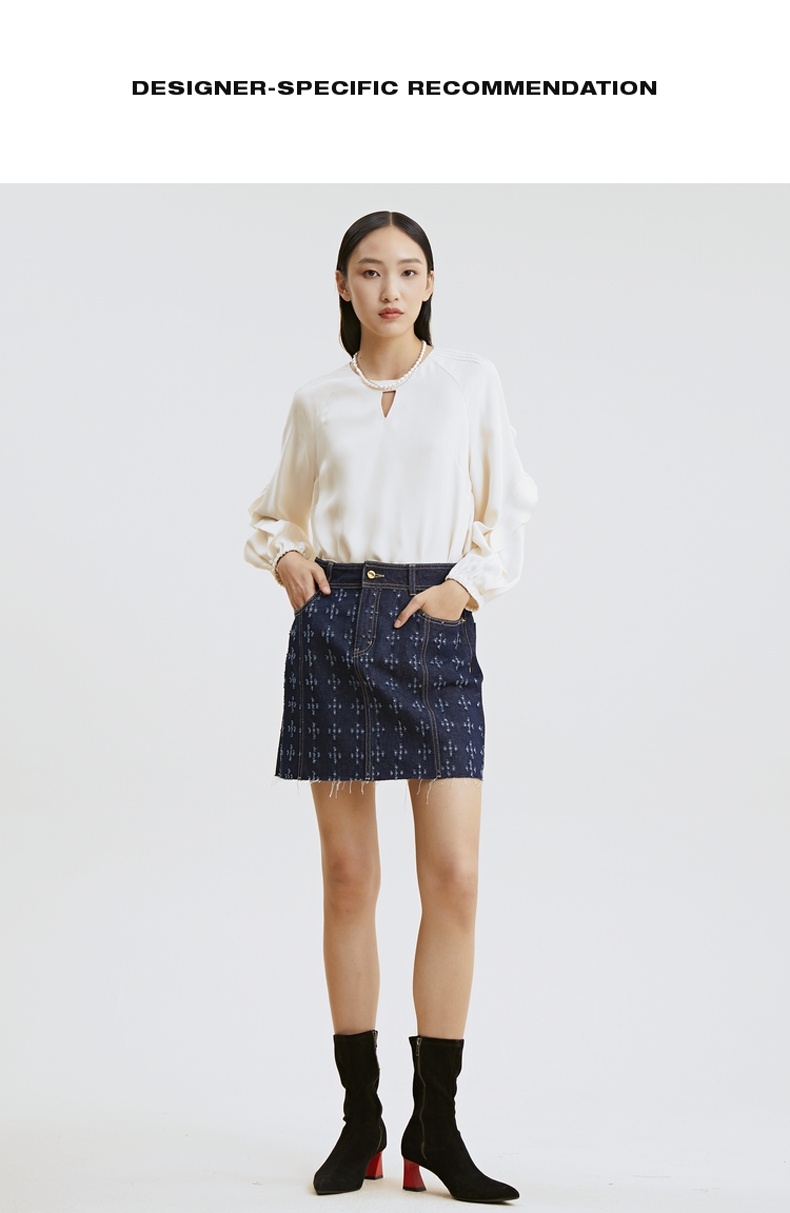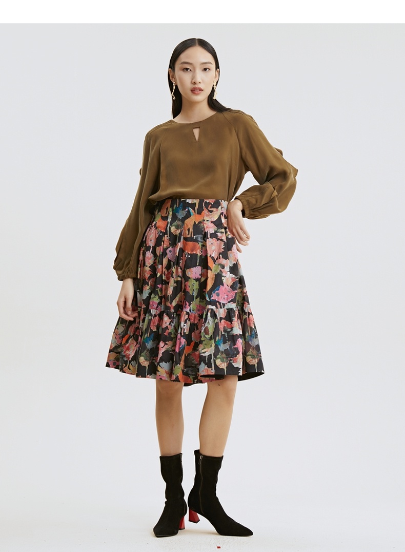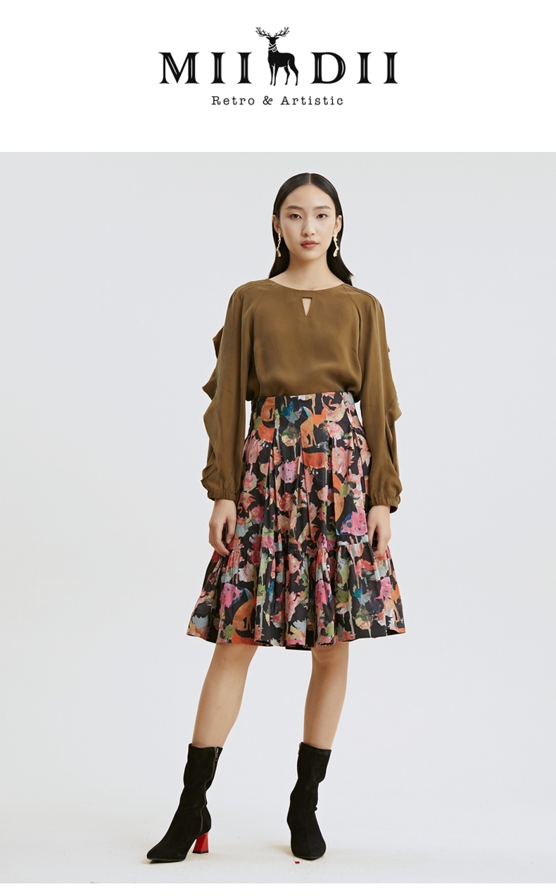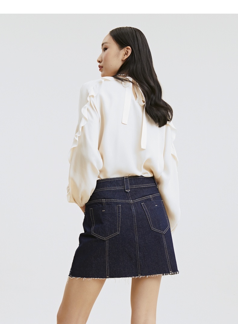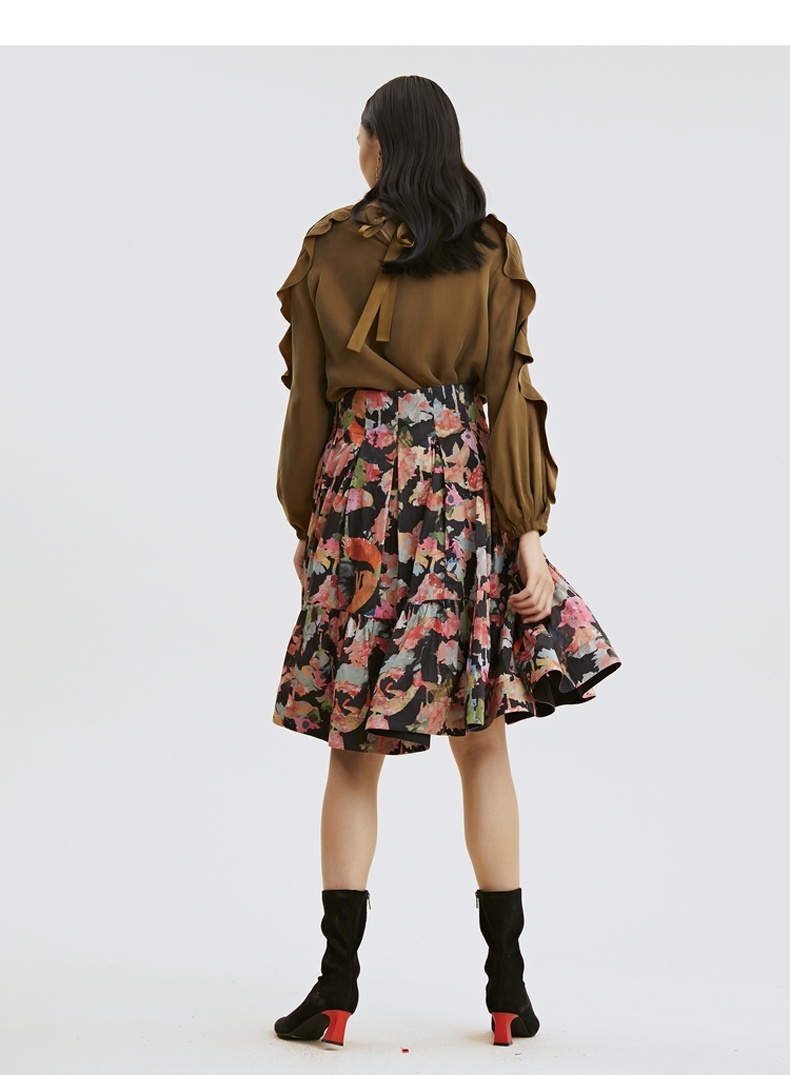 谜底2021秋季新款甜美优雅荷叶袖宽松长袖铜氨丝上衣女213MS1661