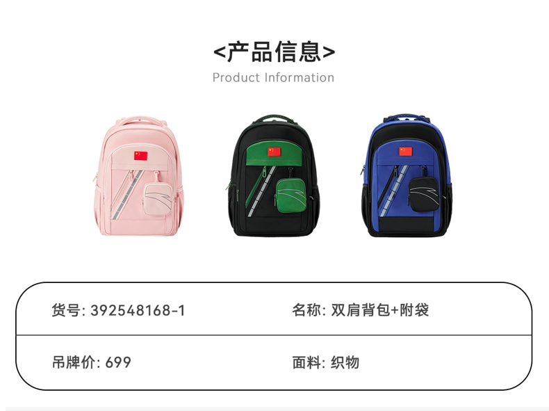 安踏儿童男女童双肩背包+附袋2025新款大容量小学生减负防水书包392548168