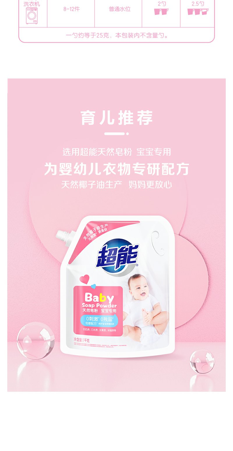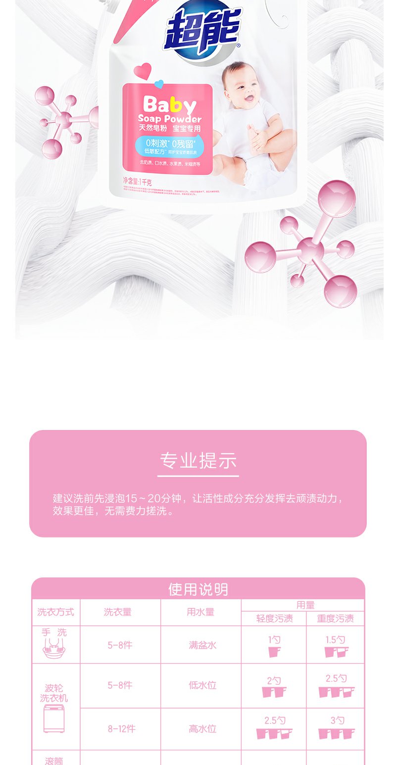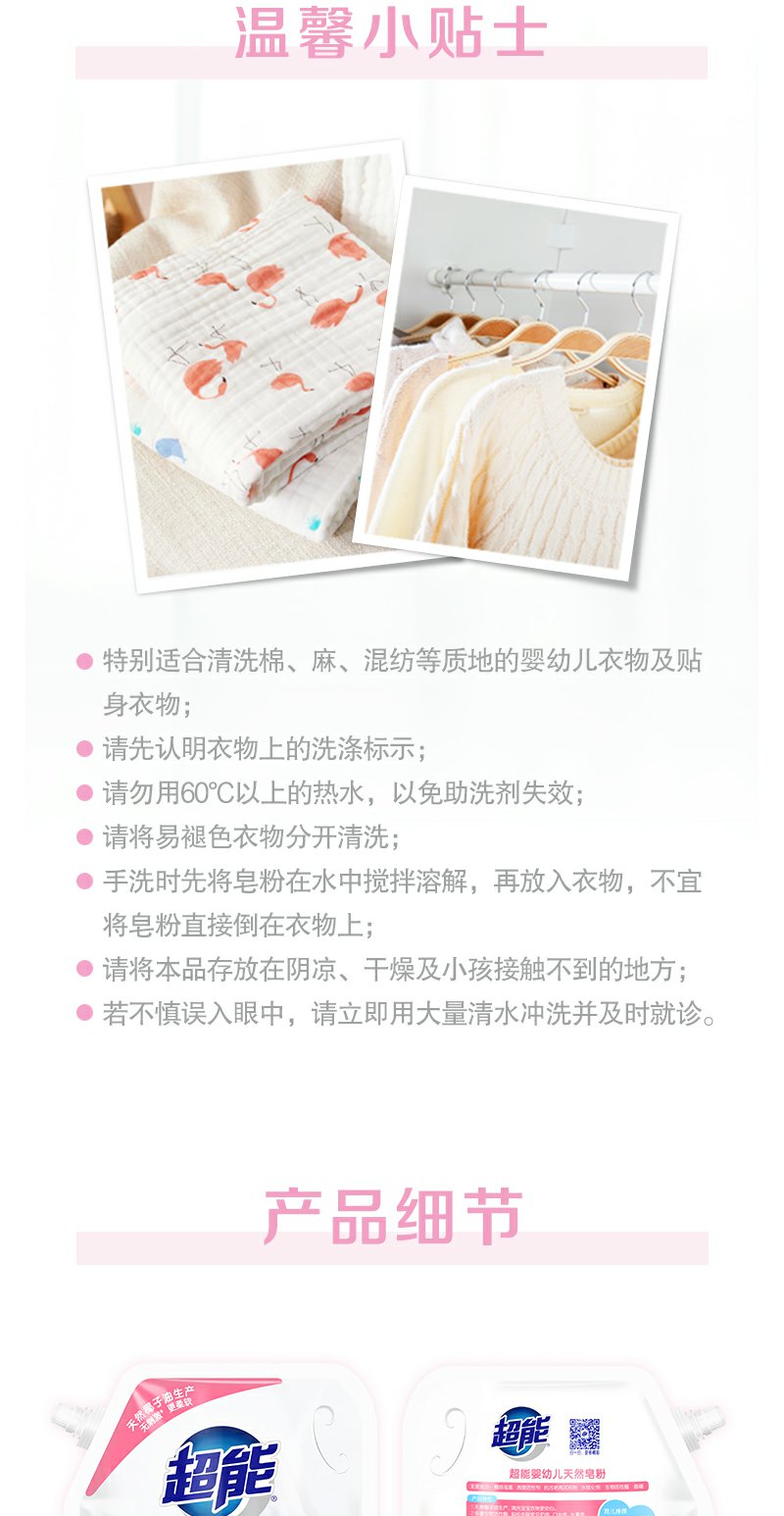 超能 婴幼儿天然皂粉 宝宝专用洗衣皂液 1kg/袋