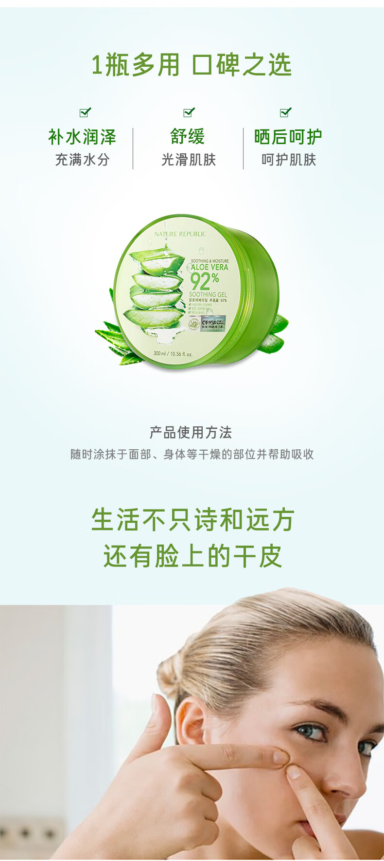 Nature Republic纳益其尔 自然乐园芦荟保湿凝胶芦荟胶 300ml/罐